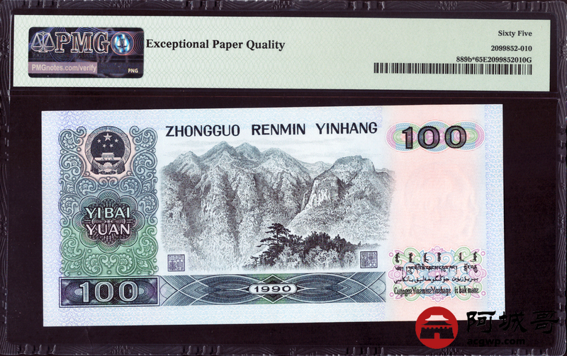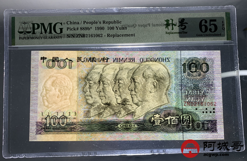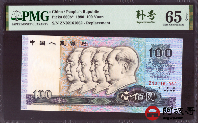Lot:1 四版 1990年 中国人民银行壹佰圆 PMG 65EPQ 补号券朦胧号