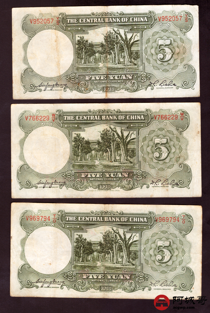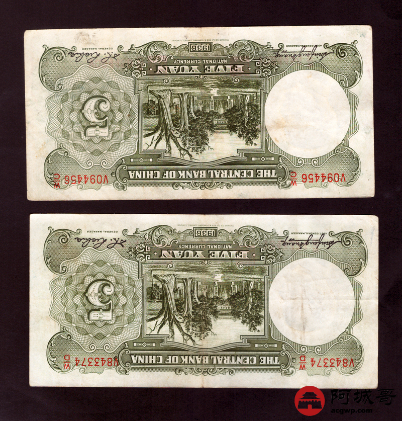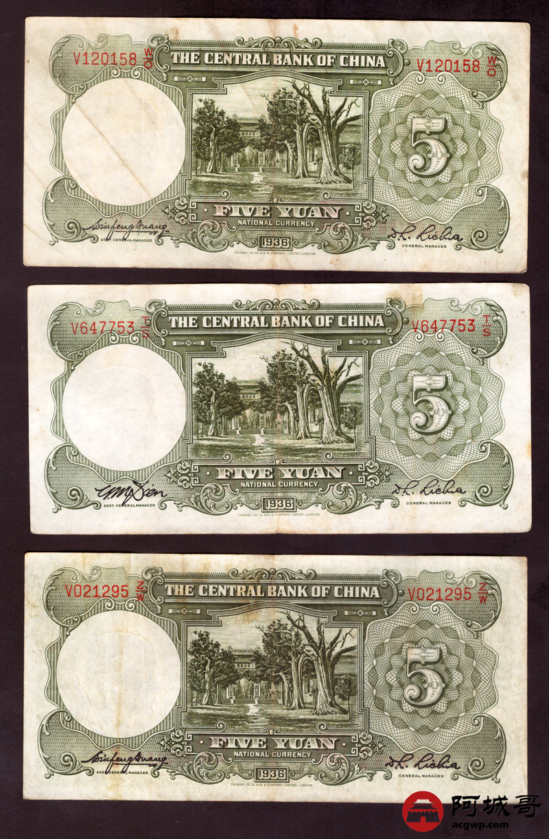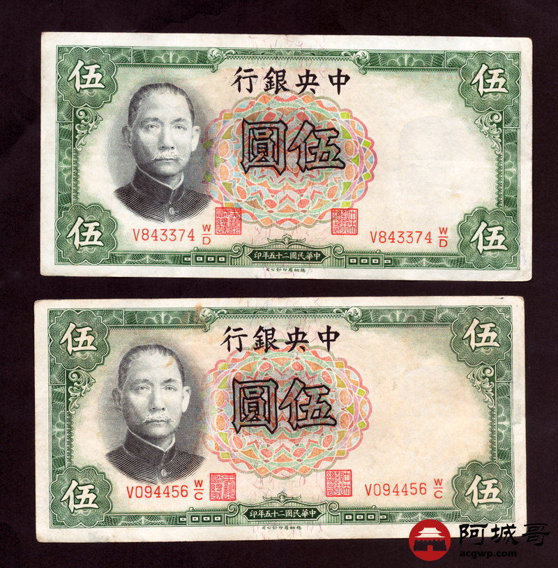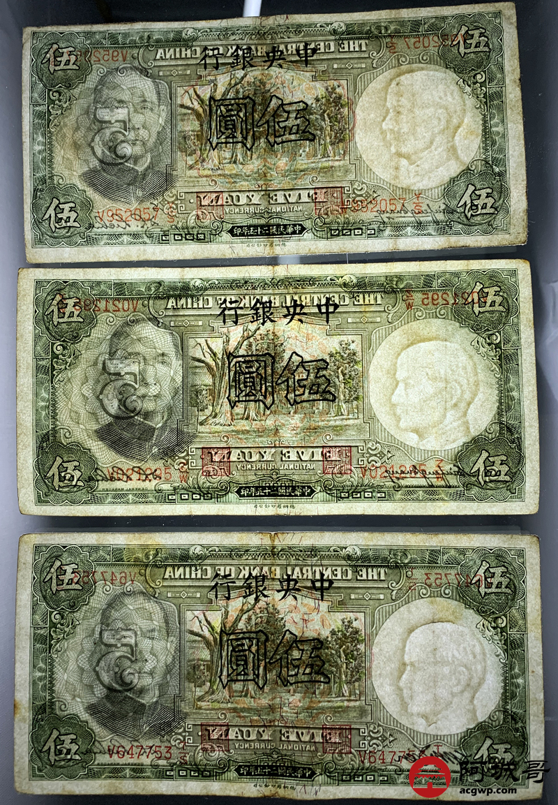 Lot:67 民国二十五年 中央银行伍圆 10张 7至73成新