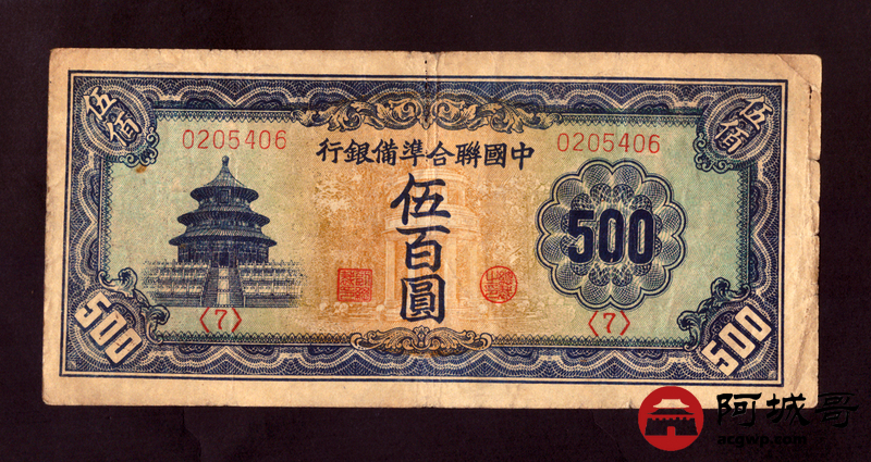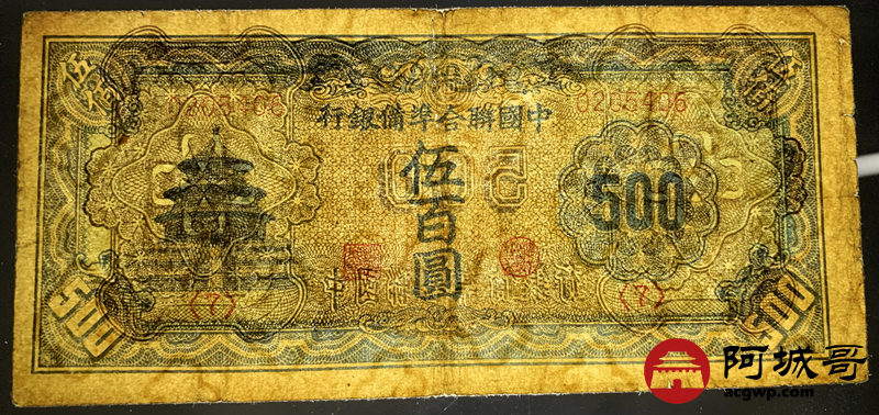 Lot:51 中国联合准备银行 伍佰圆 67成新