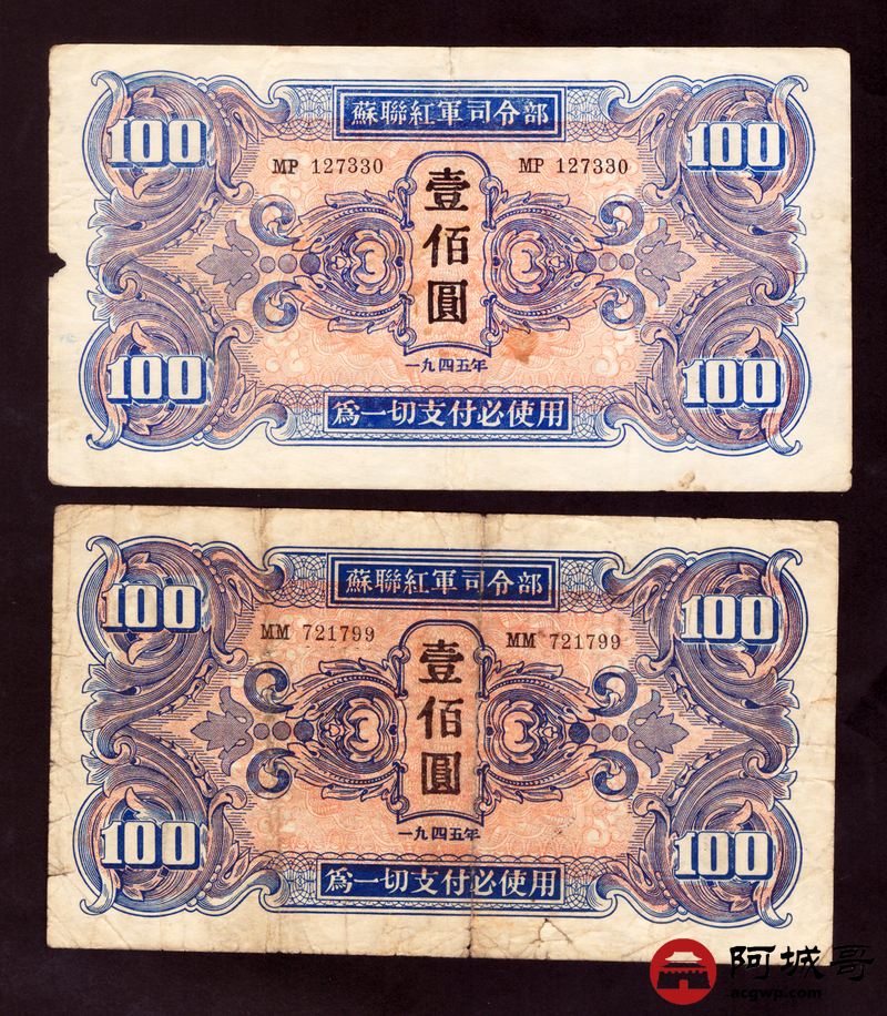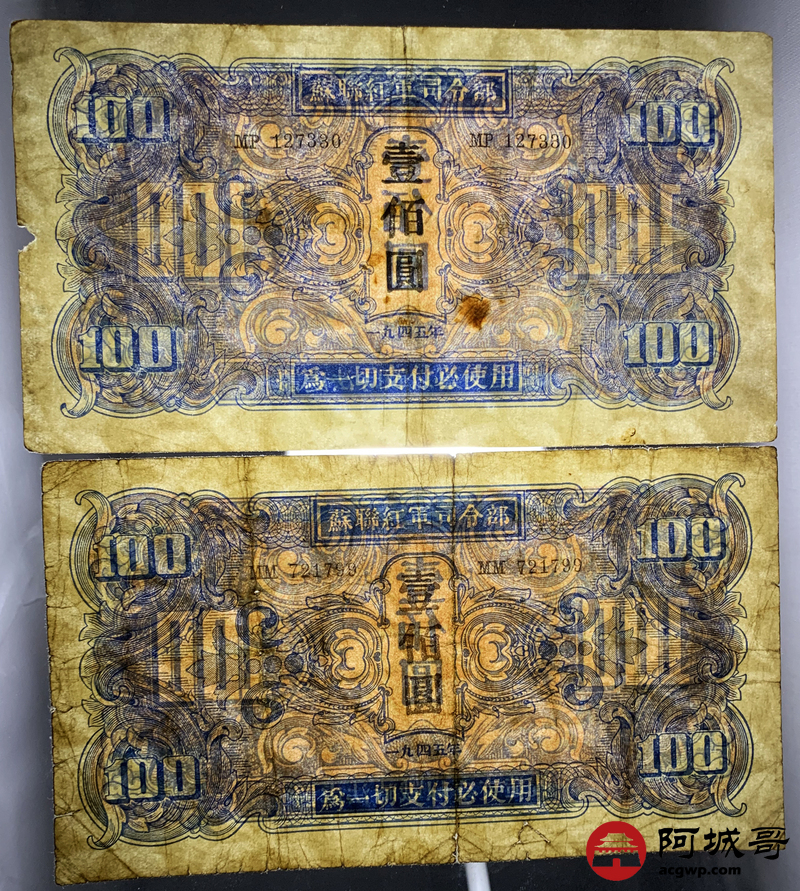 Lot:46 1945年 苏联红军司令部 壹佰圆 2张 68成新
