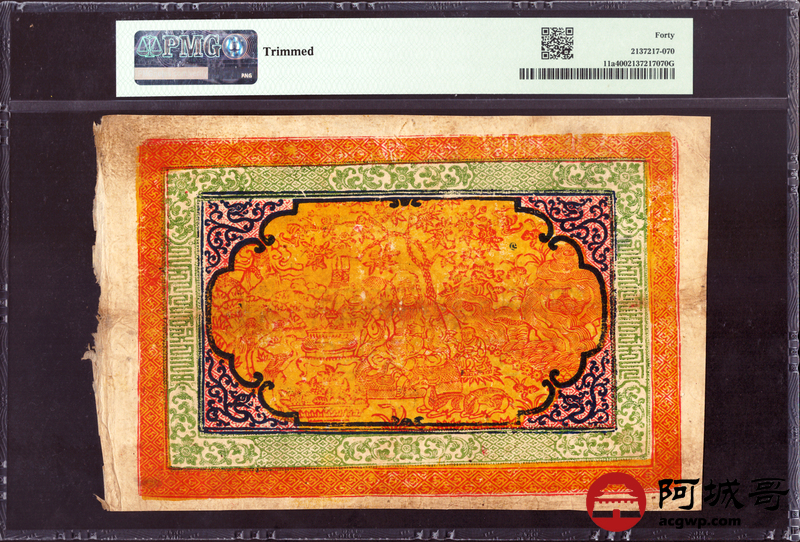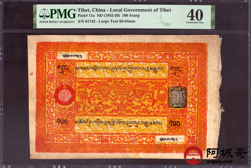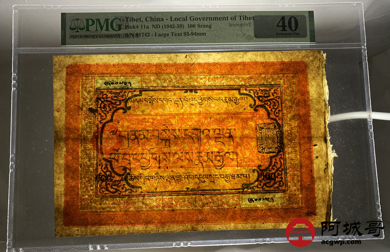 Lot:27 西藏老纸币 100两 PMG 40