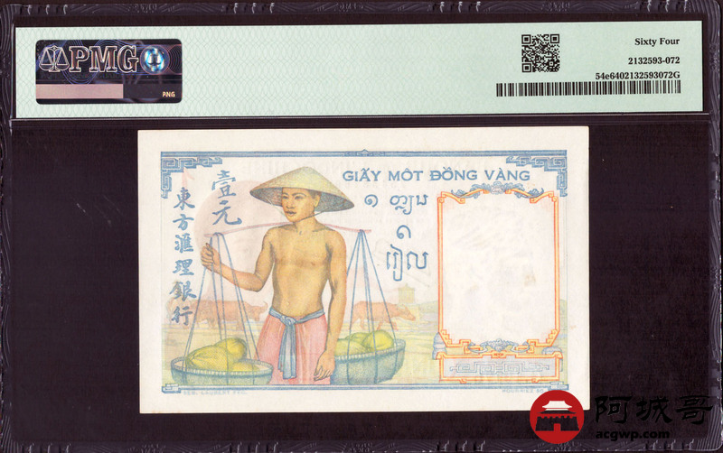 Lot:24 东方汇理银行 壹圆 (1949年 ) PMG 64