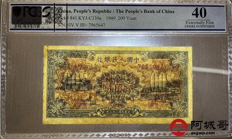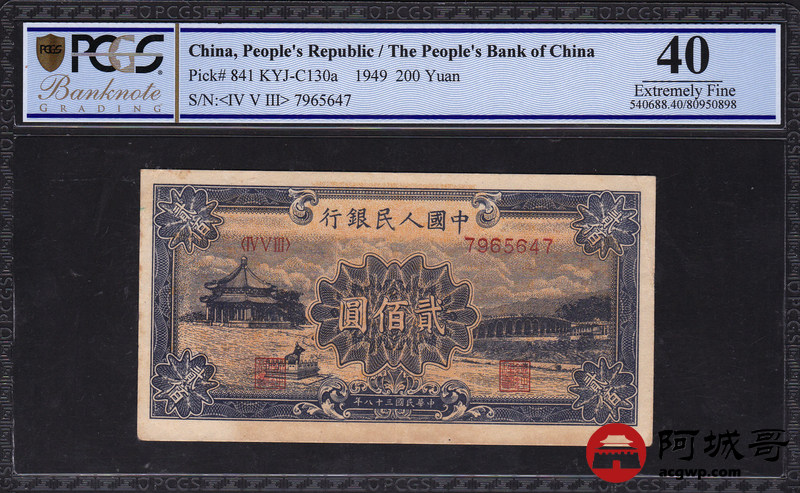 Lot:26 一版 民国38年 贰佰圆颐和园 感觉低评 PCGS 40