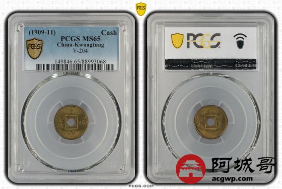 Lot:19 1909-11原光方孔宣统通宝 PCGS MS65