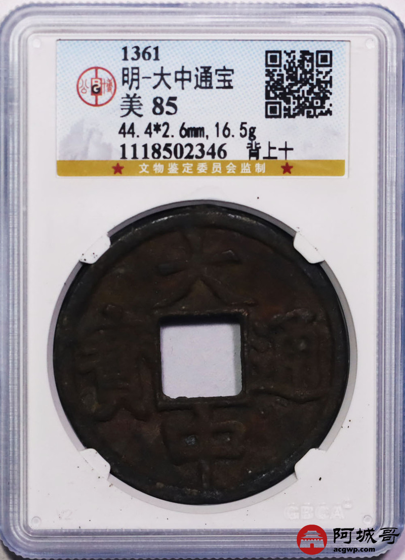 Lot:22 明-大中通宝 背上十 公博 美85