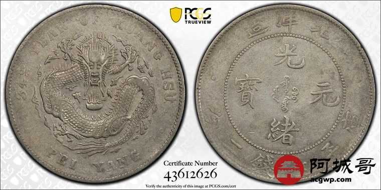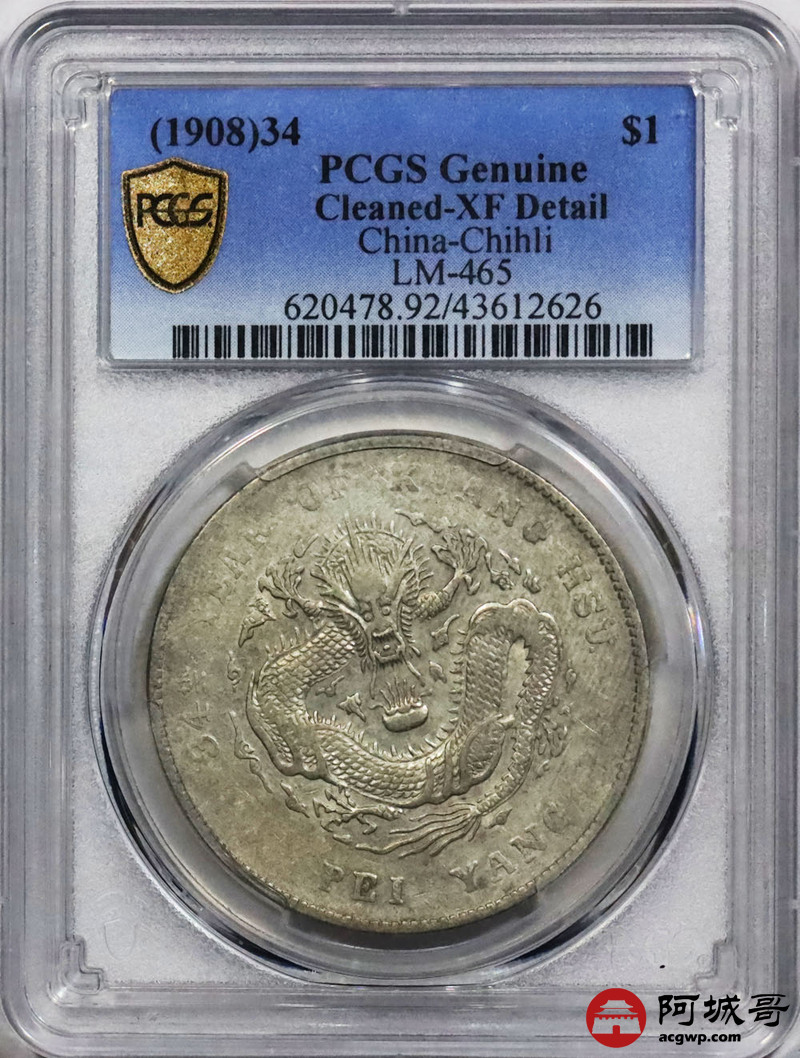 Lot:11 底光全龙鳞 北洋34七钱二分 PCGS XF