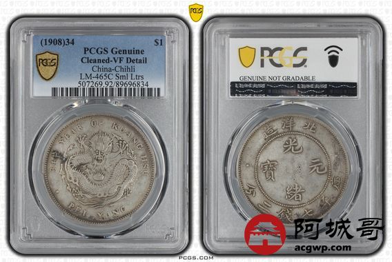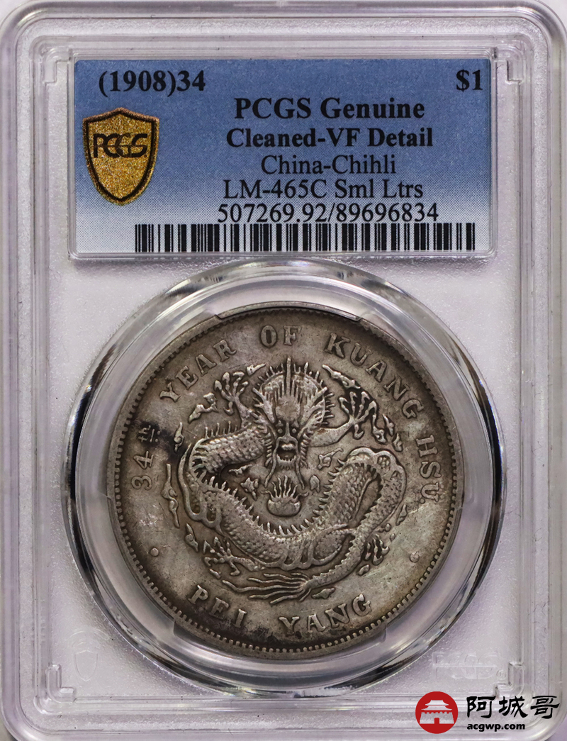 Lot:10 原味老包浆 北洋34七钱二分 小字版 PCGS VF