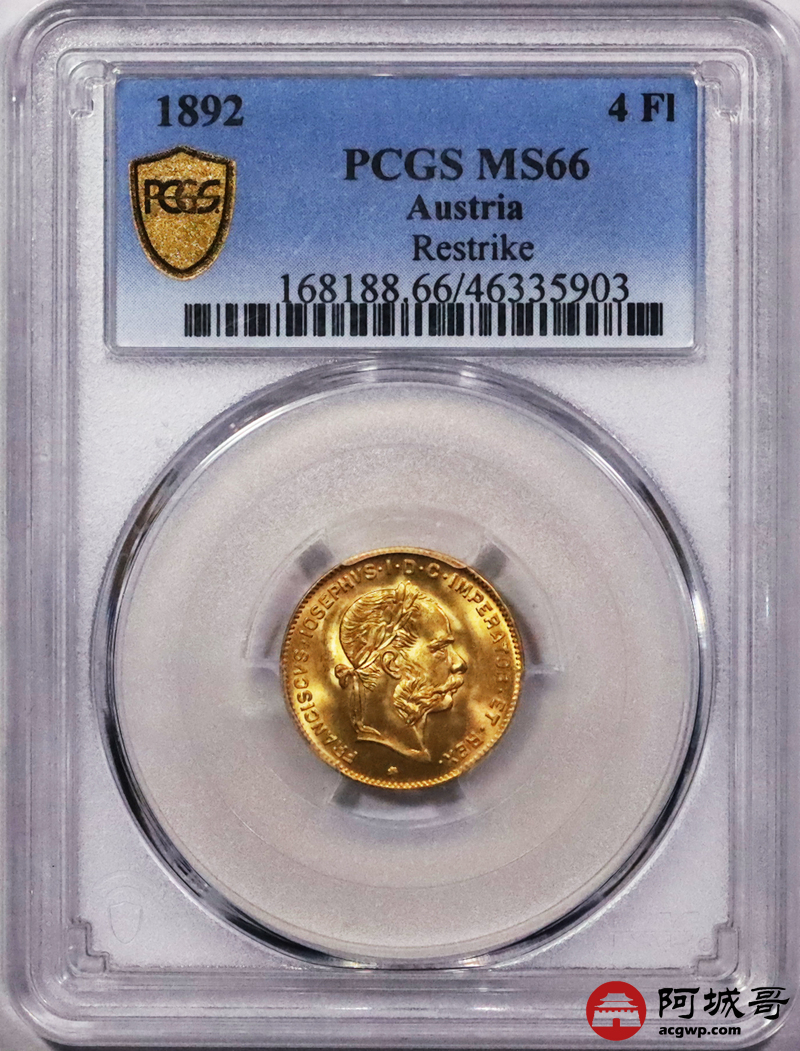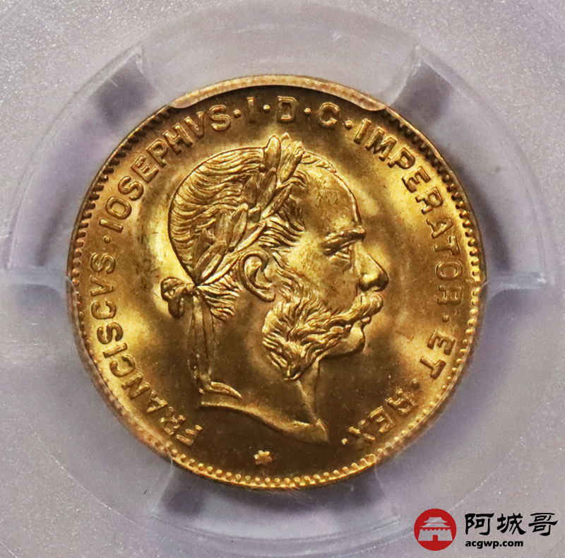 Lot:14 1892年奥匈帝国4佛罗林10法郎金币 PCGS MS66