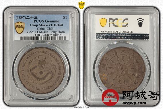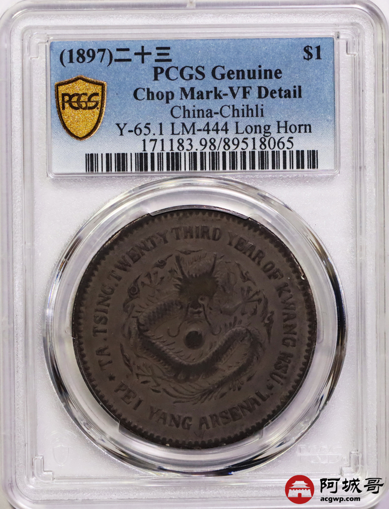 Lot:8 原味咖色老包浆 北洋二十三年机器局壹圆 PCGS VF