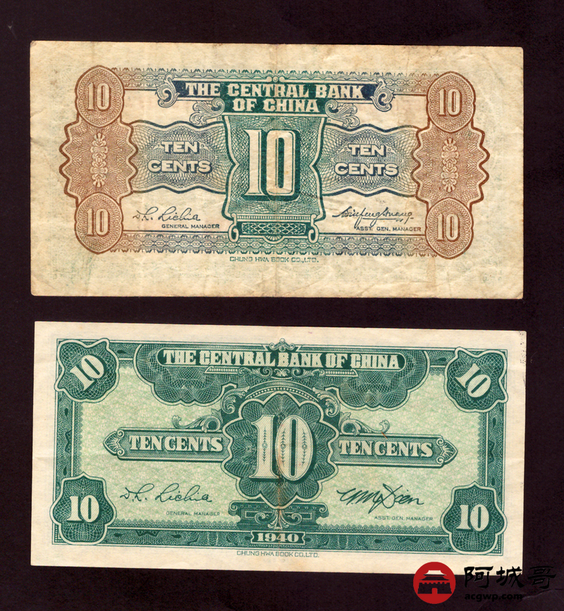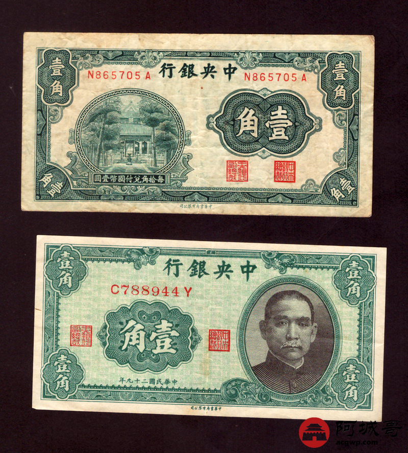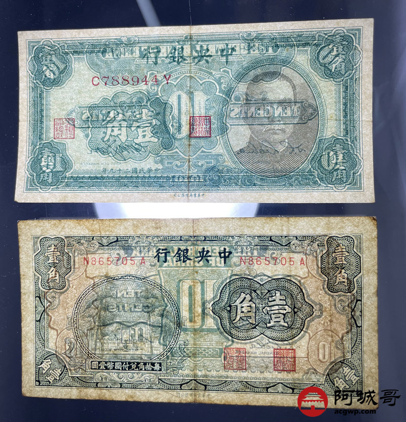 Lot:73 民国时期 中央银行 壹角 2张 72至8成新