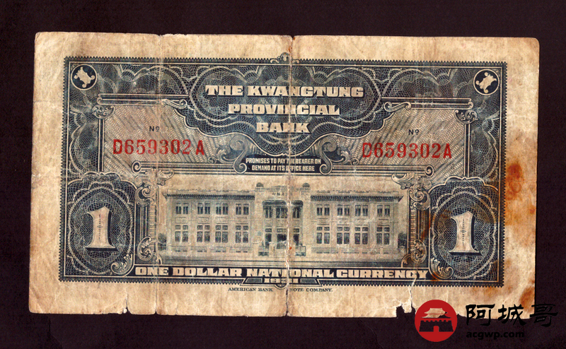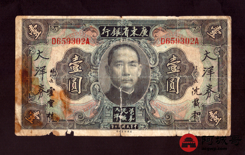 Lot:18 民国二十年 广东省银行 大洋票壹圆 68成新