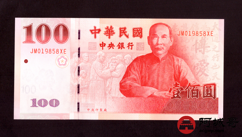 Lot:53 中华民国 中央银行 壹佰圆 原票95至全新