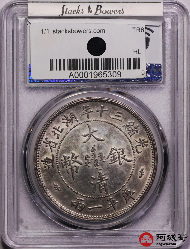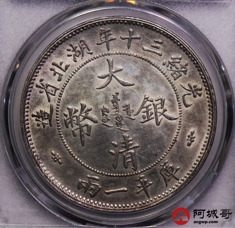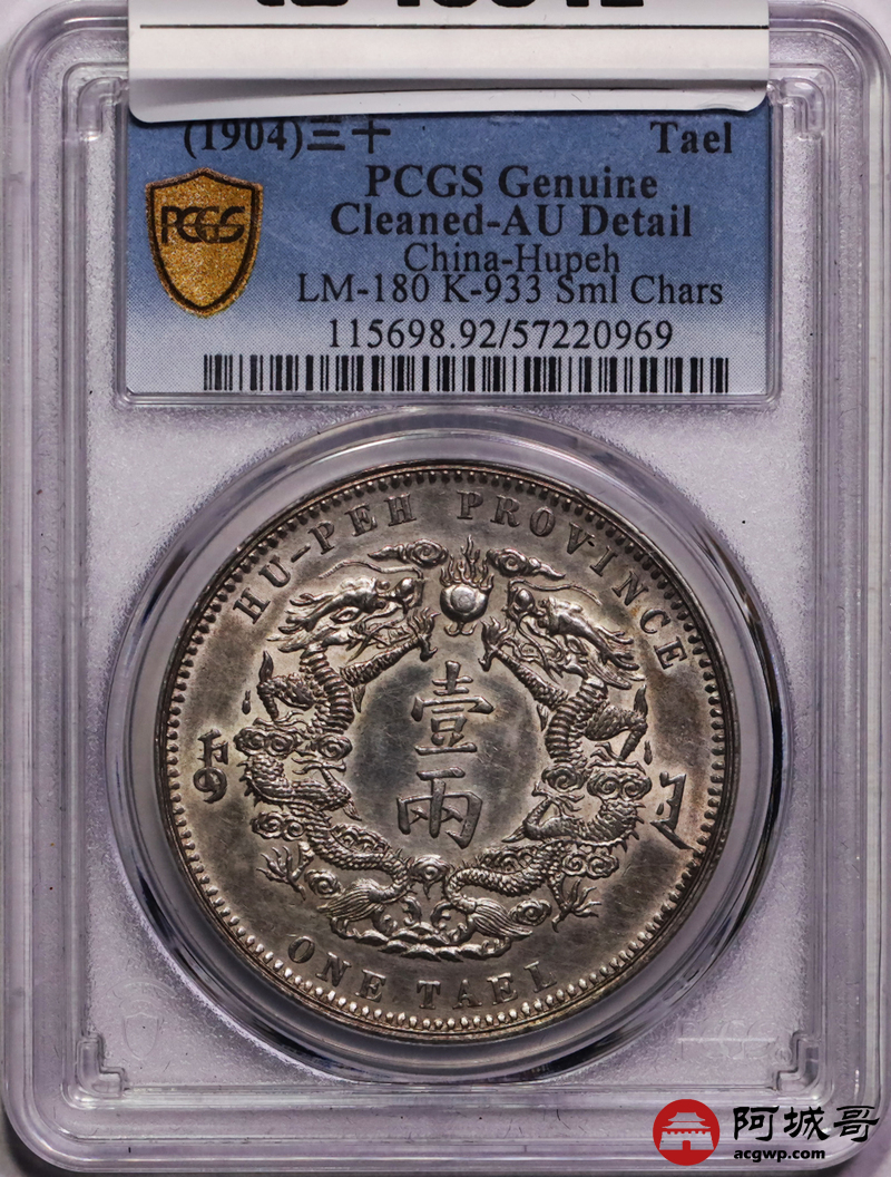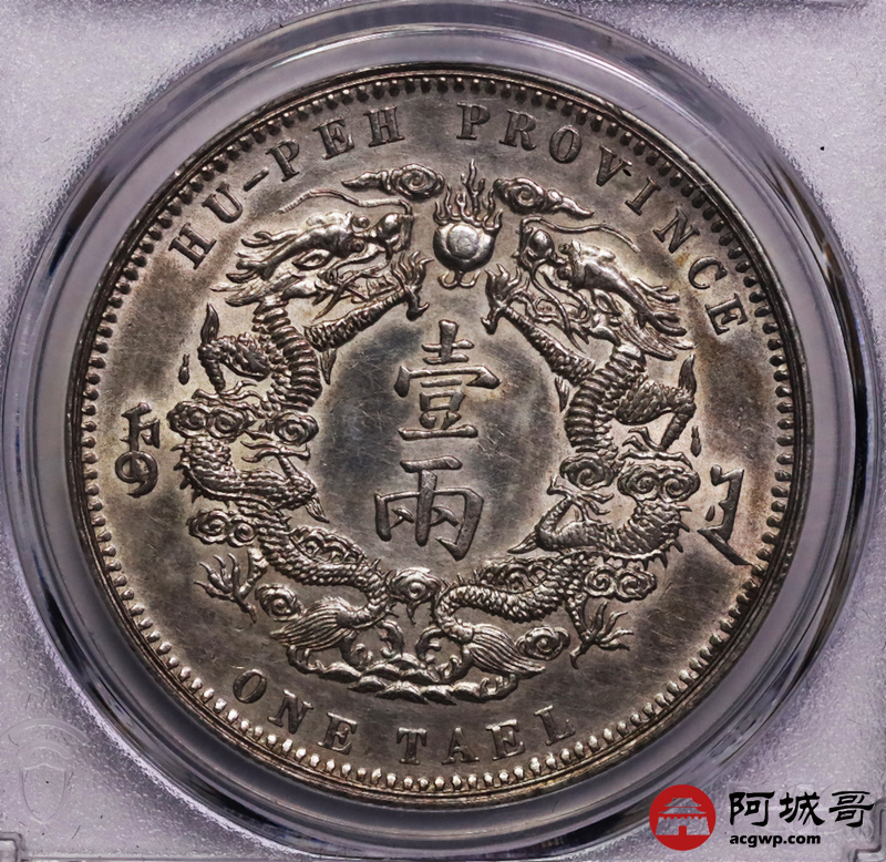 Lot:null 深打转光底板 民国三十年湖北双龙壹两 PCGS AU