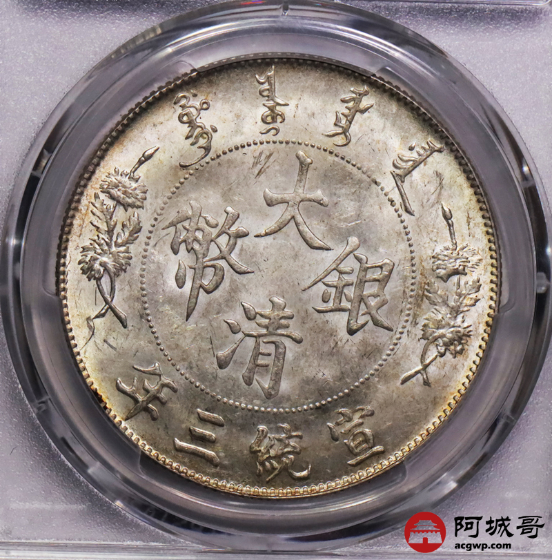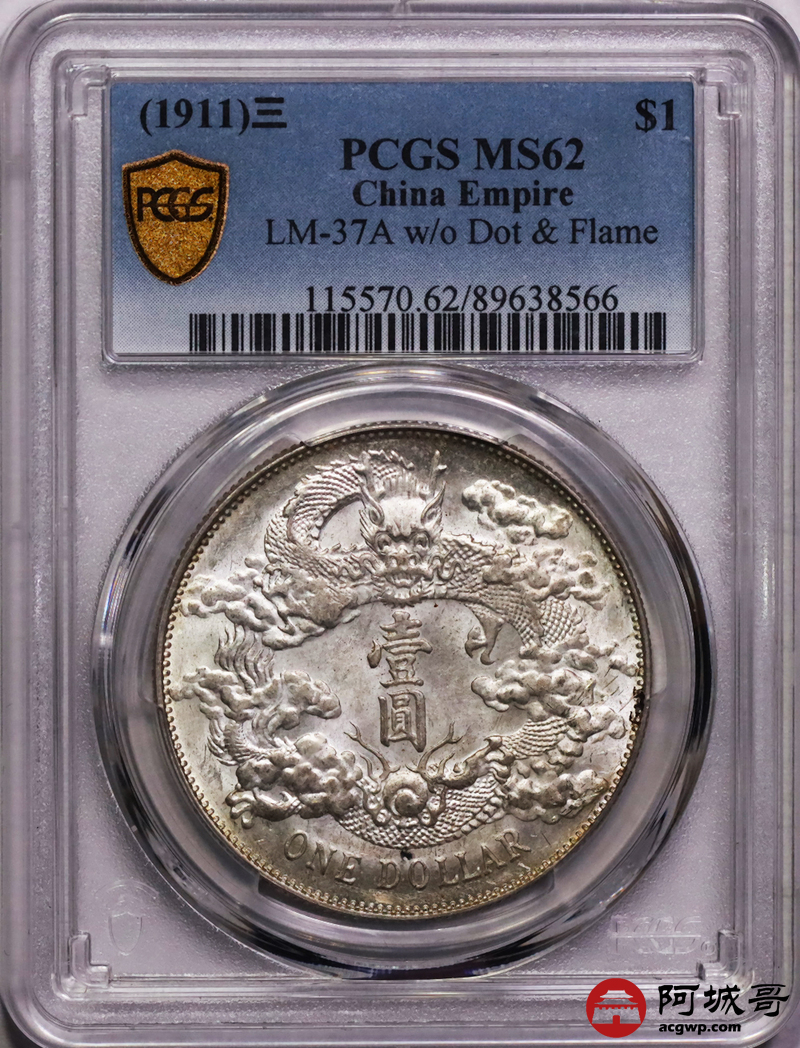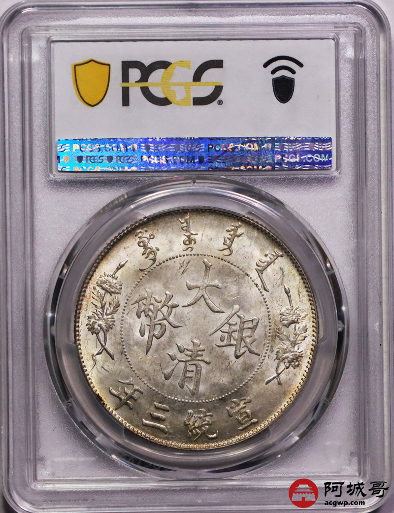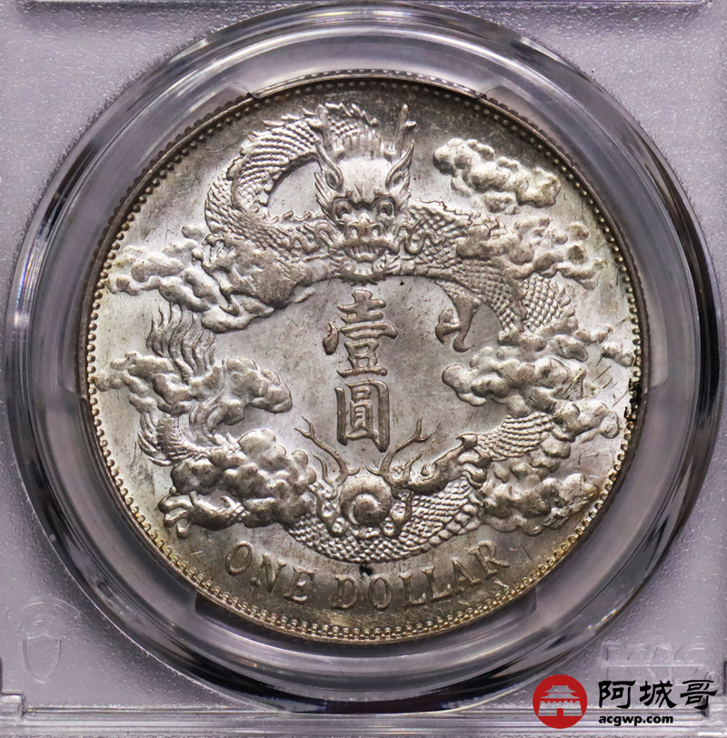 Lot:null 黄油原光 柔和底板 大清宣三壹圆 PCGS MS62