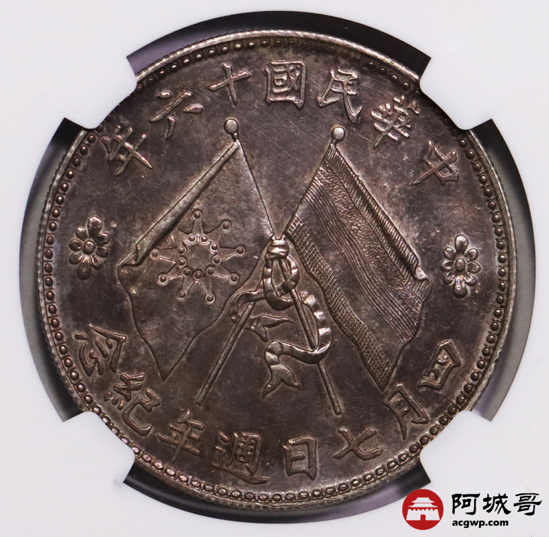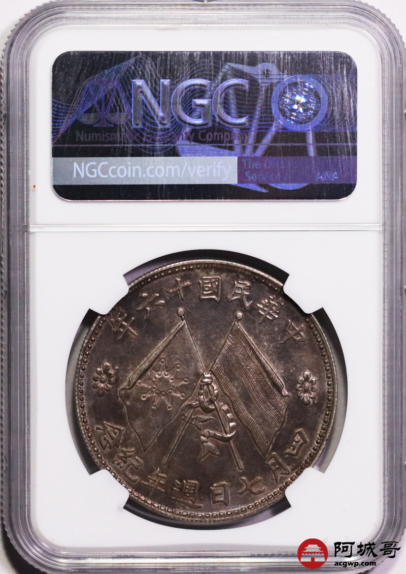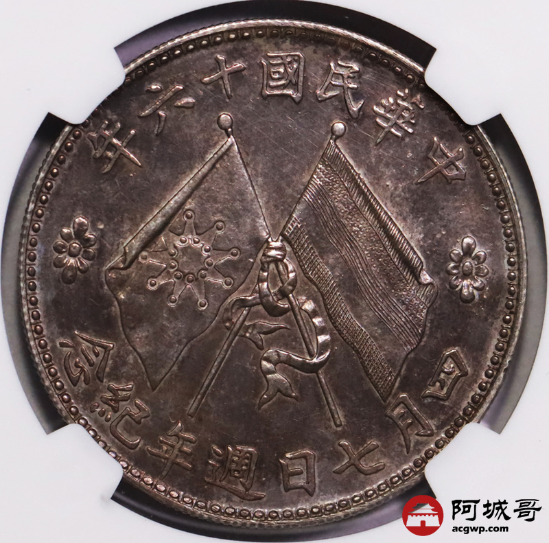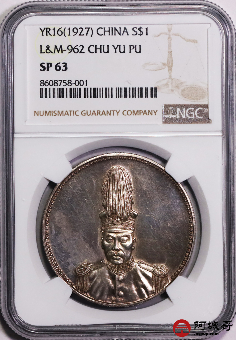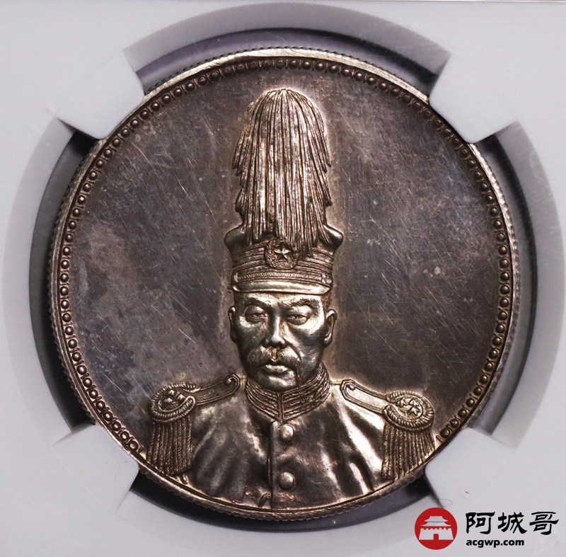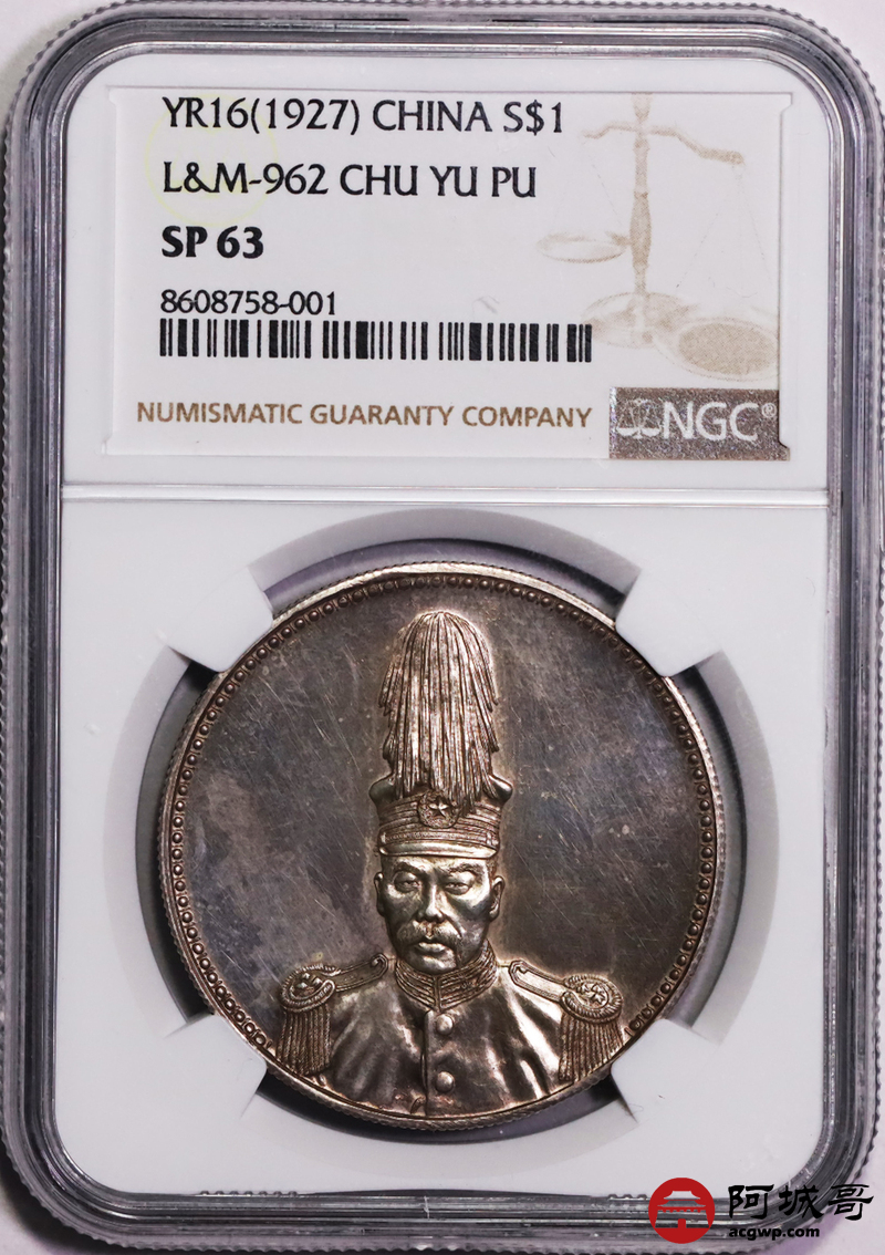 Lot:null 镜面粉彩 深打 民国十六年 褚玉璞像纪念币 NGC SP63