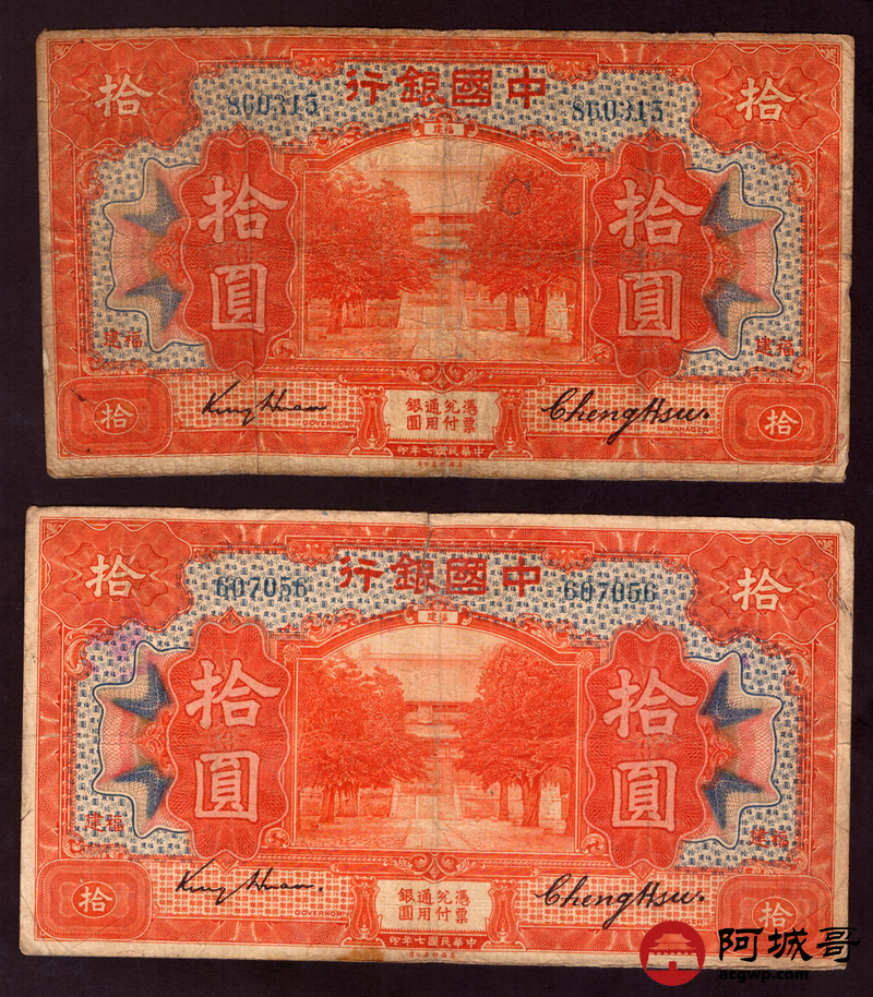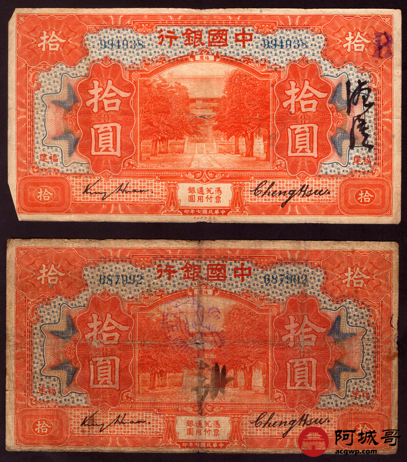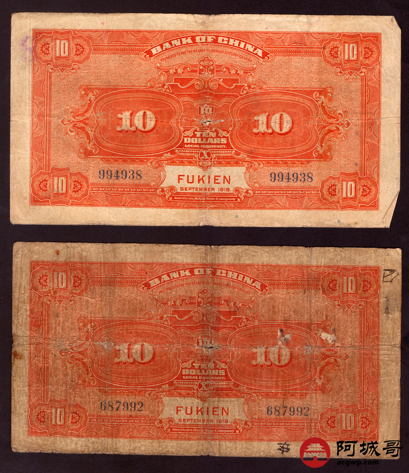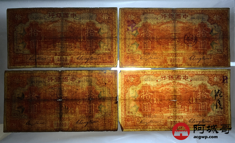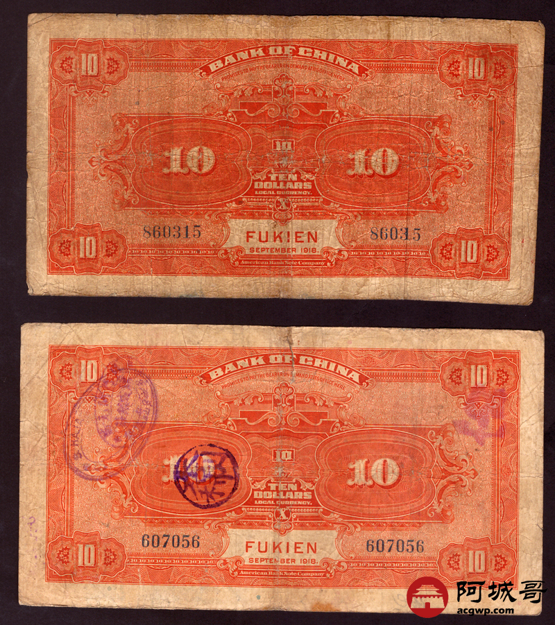 Lot:36 民国7年 中国银行 拾圆 福建地名 4张 67至69成新 一张微修