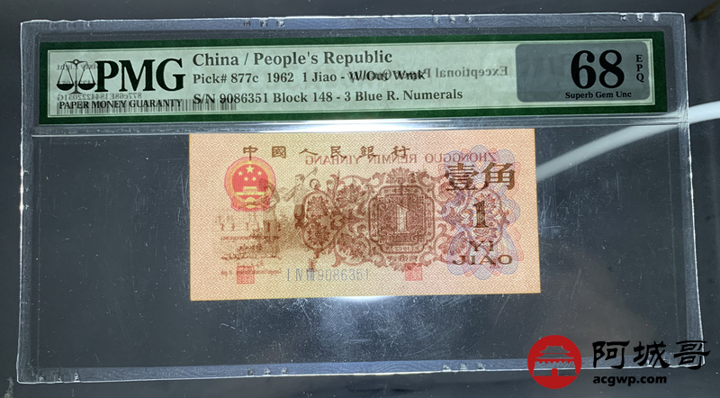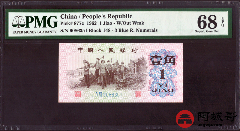 Lot:39 三版 1962年 1角 PMG 68EPQ 好号无47