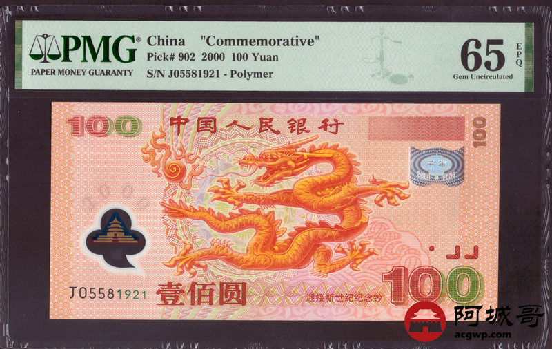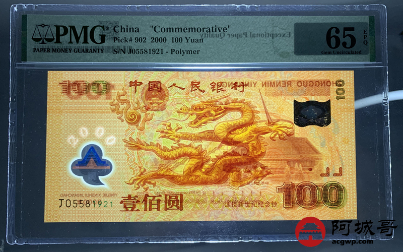 Lot:22 2000年 千禧龙钞壹佰元 PMG 65EPQ 好号无47