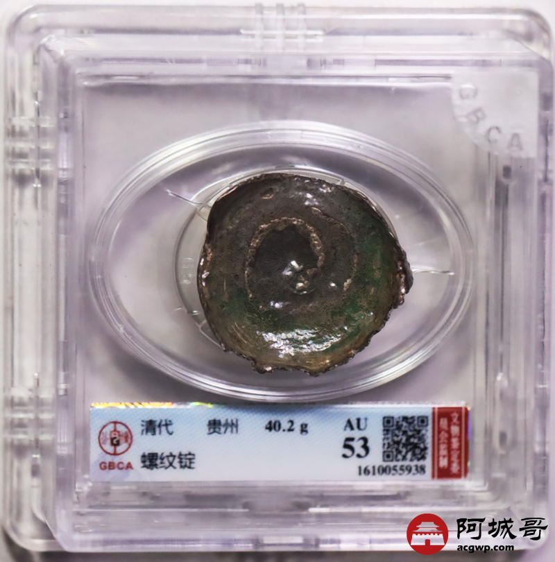 Lot:27 清代-贵州螺纹锭 40.2克 公博 AU53