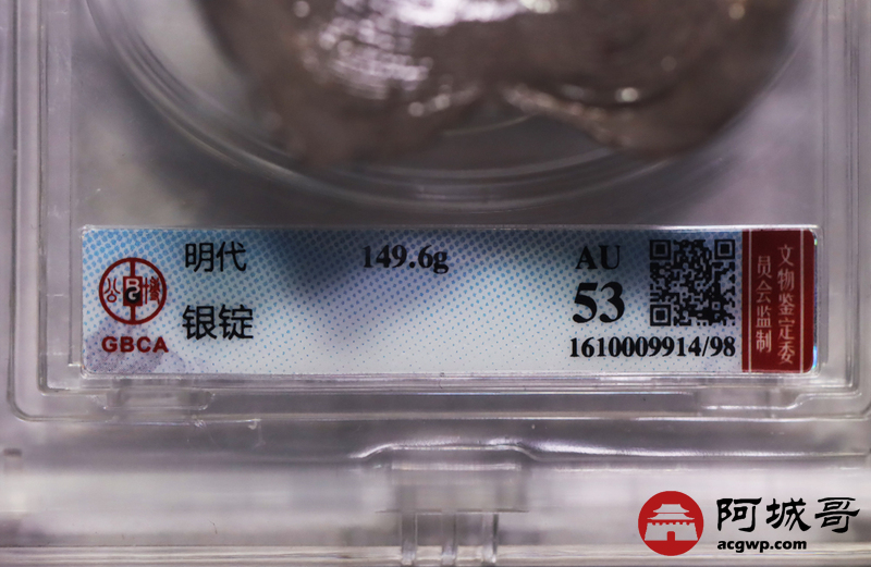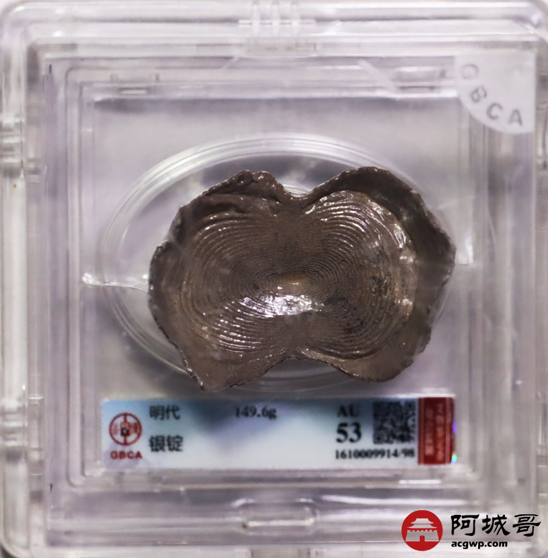Lot:26 明代-银锭-149.6克 公博 AU53