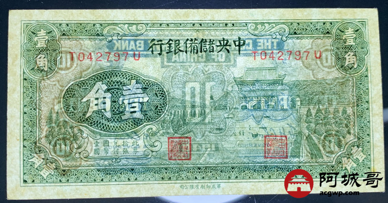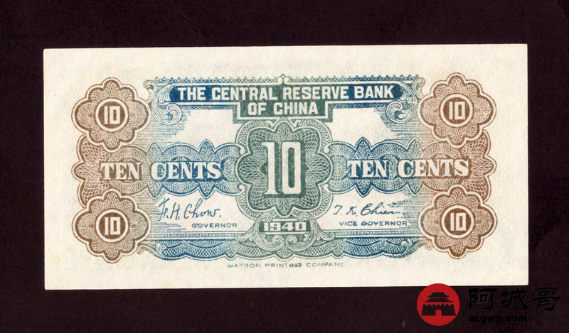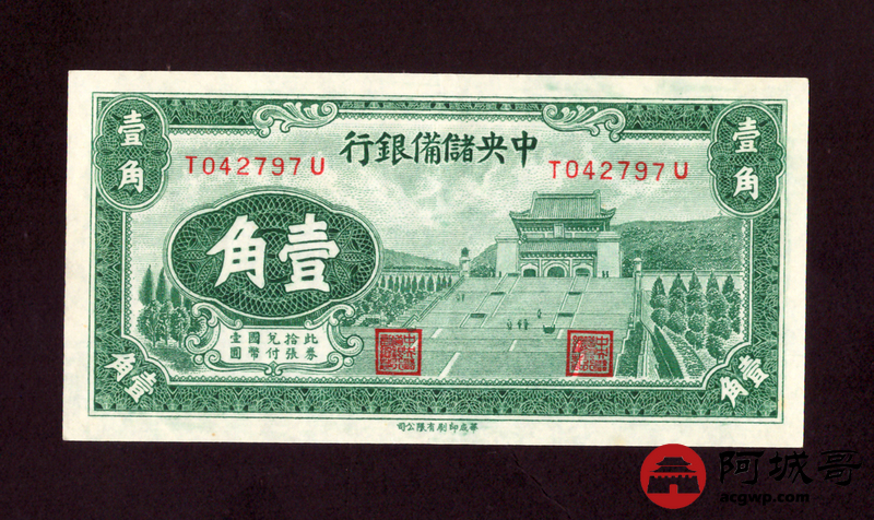 Lot:6 1940年 中央储备银行 壹角 原票9成新