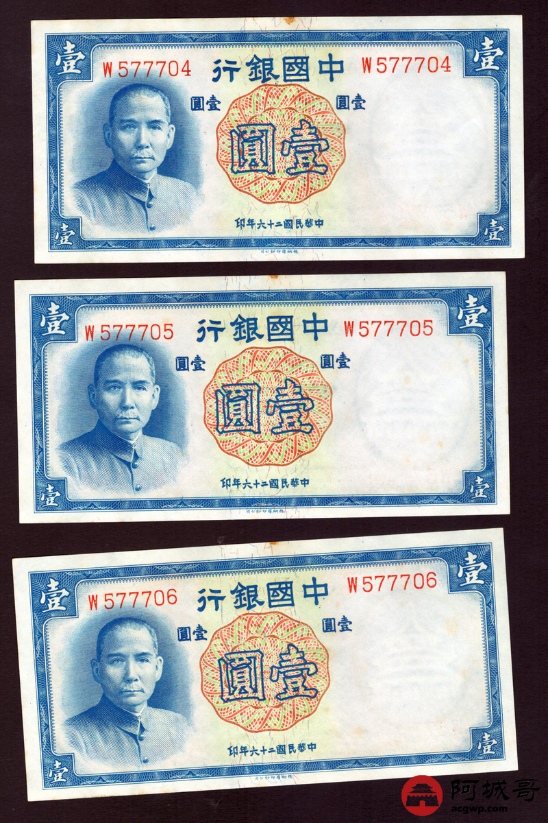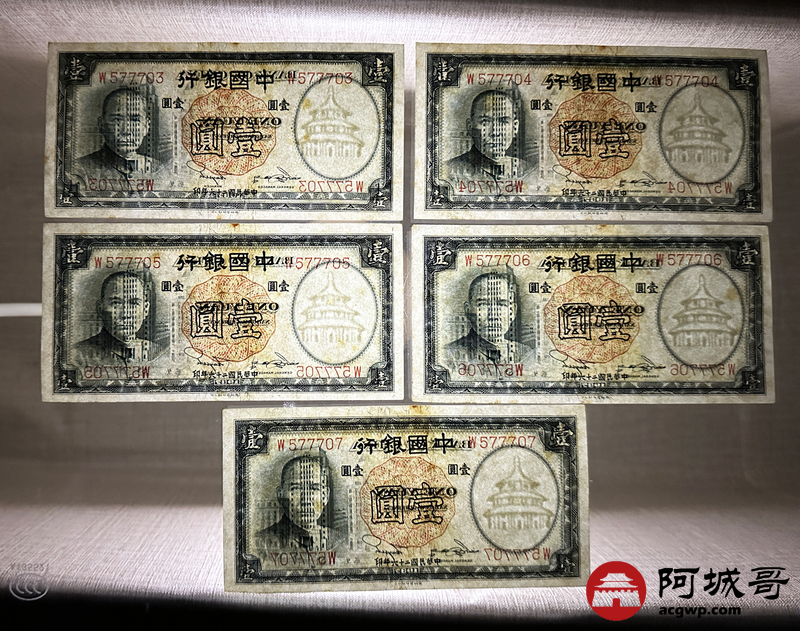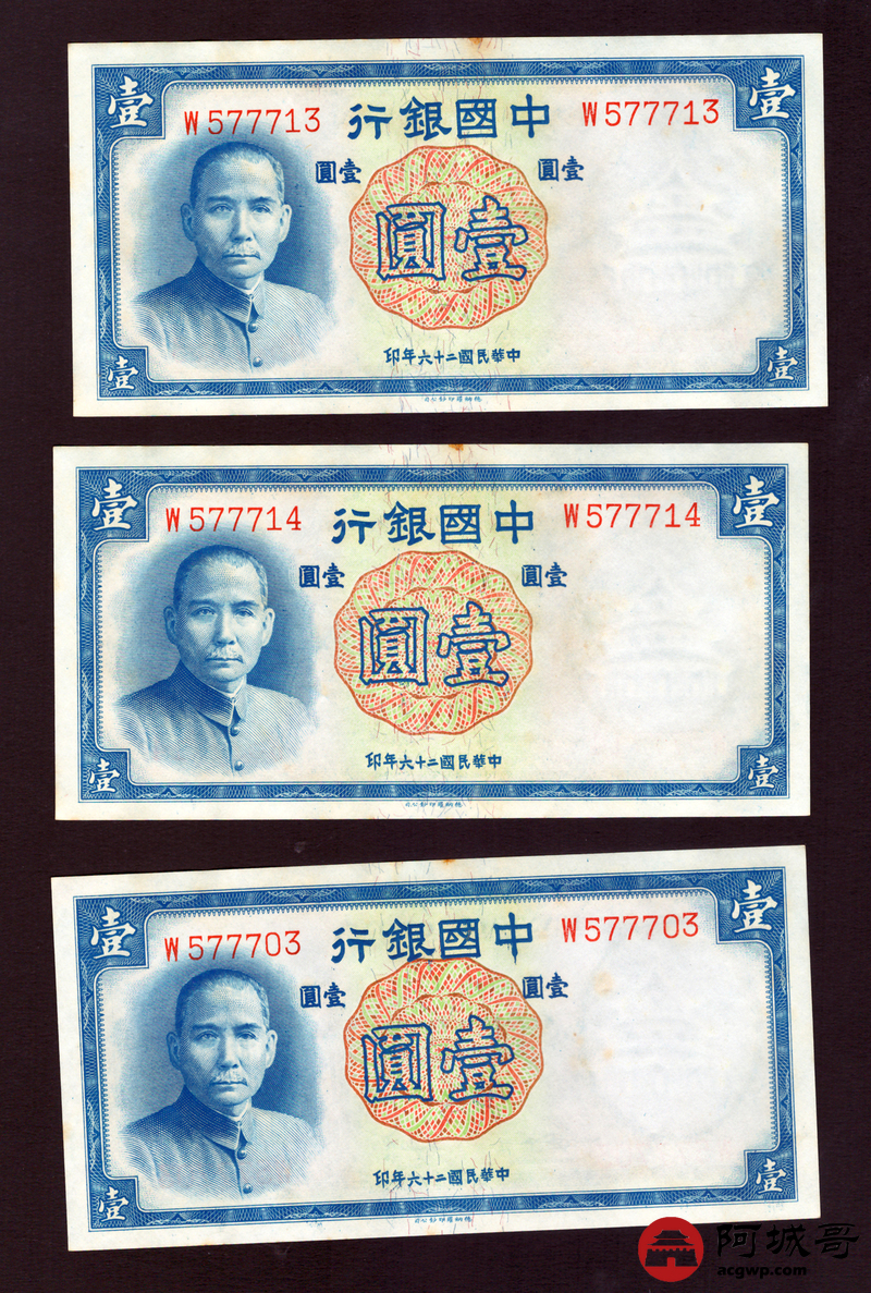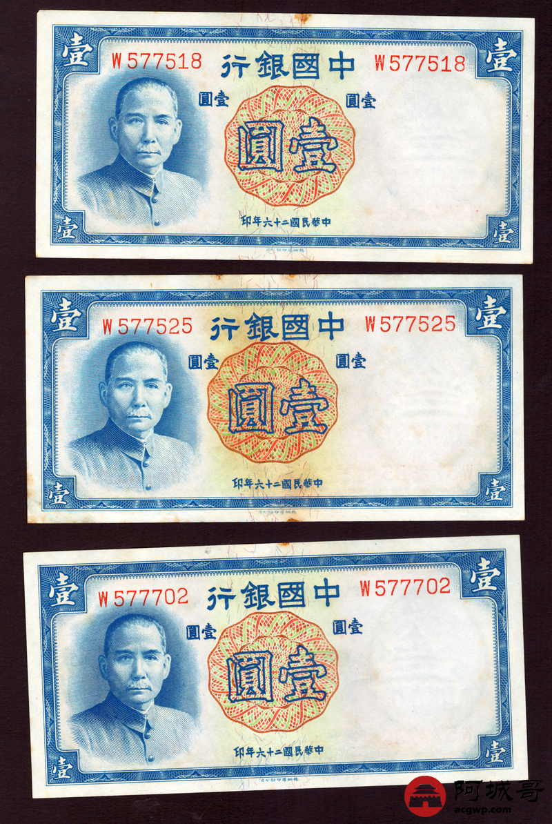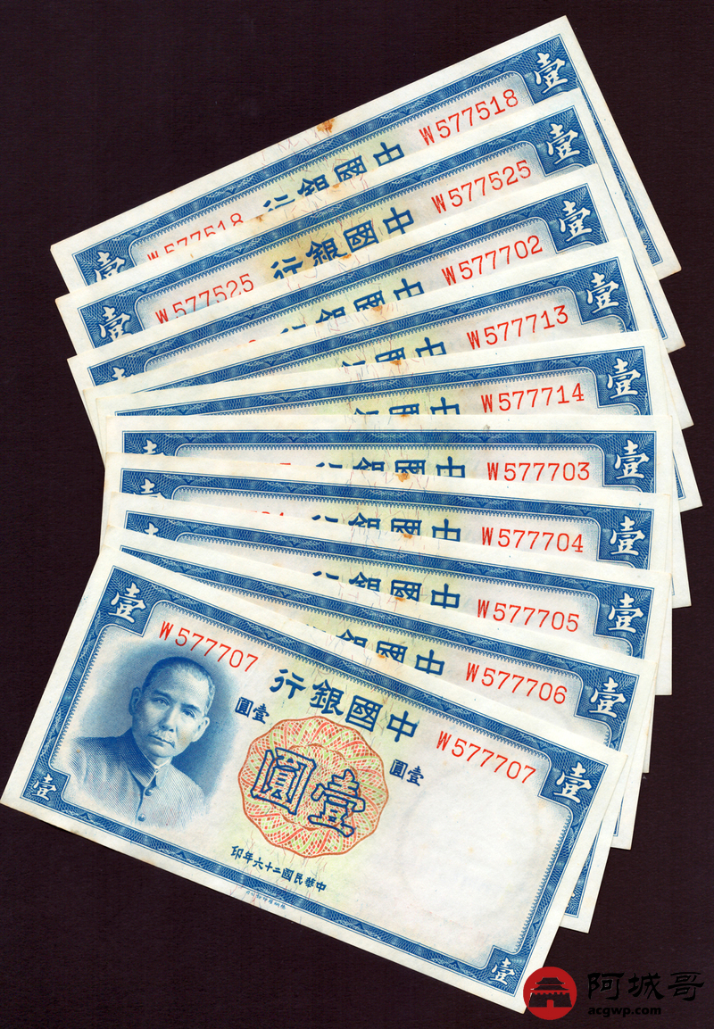 Lot:3 民国26年 中国银行 壹圆 10张一组 9至全新