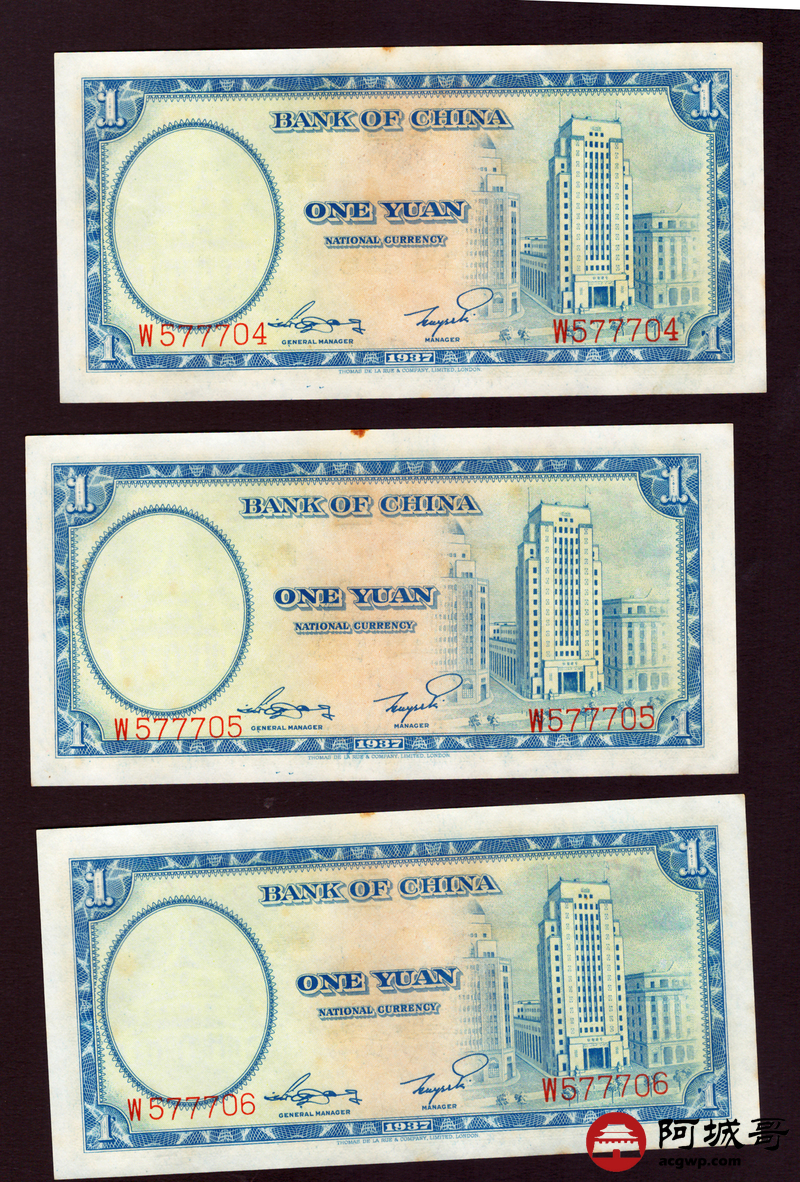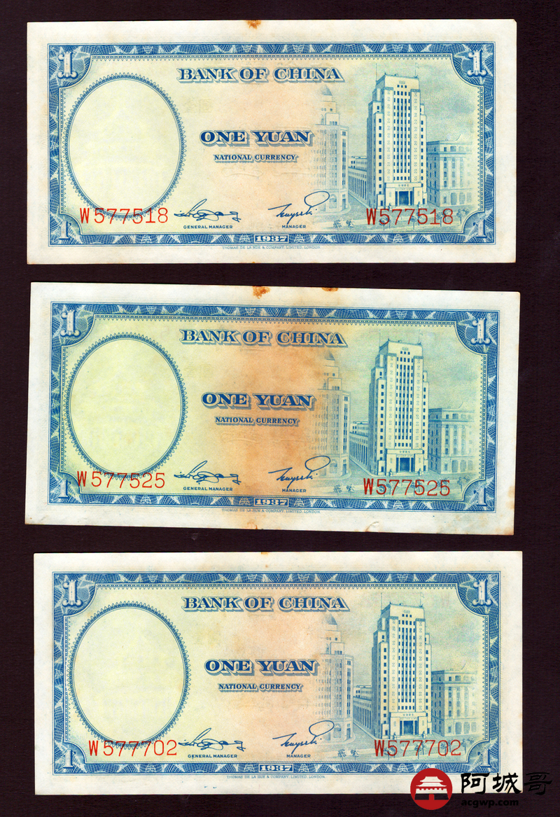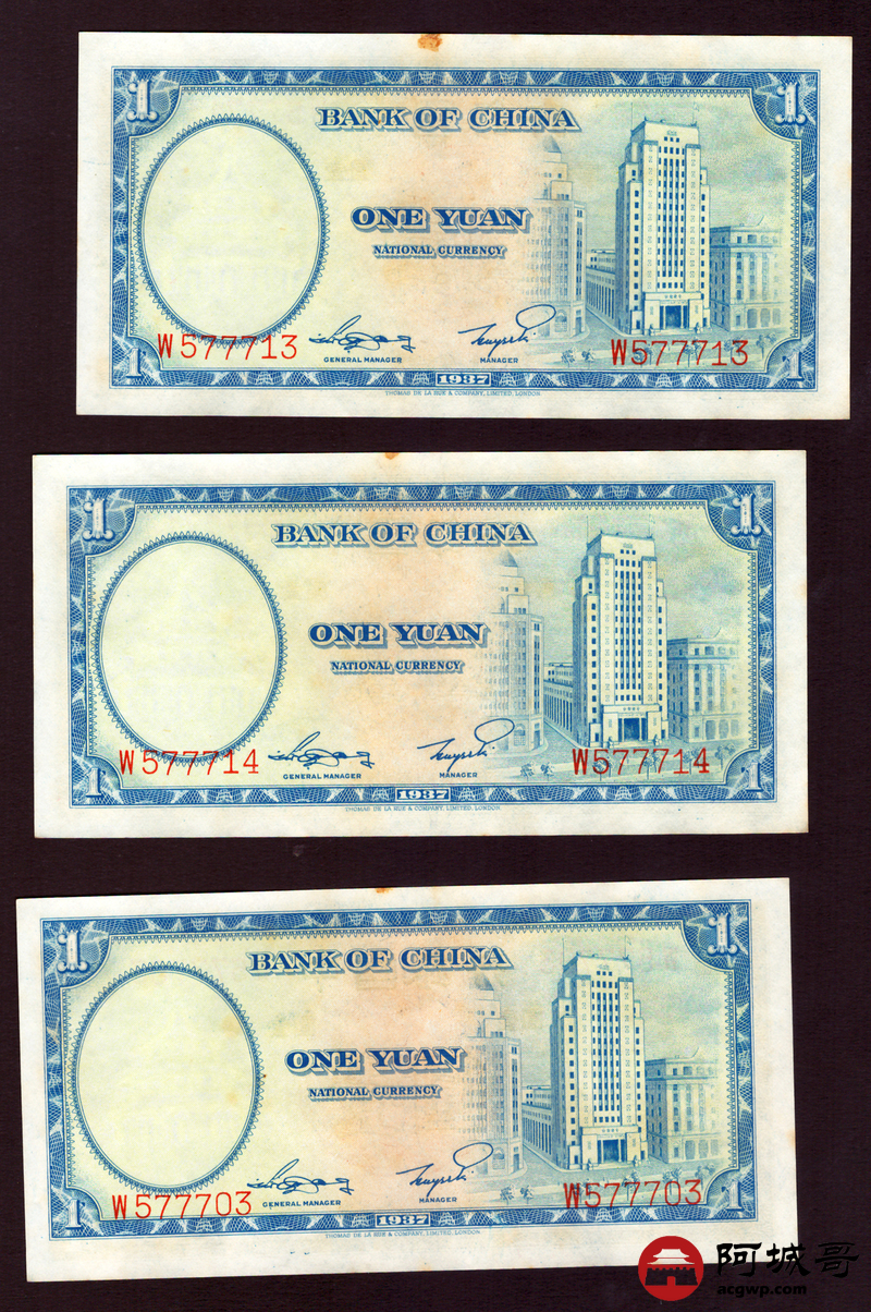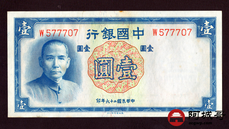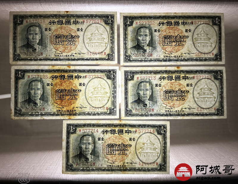 Lot:3 民国26年 中国银行 壹圆 10张一组 9至全新