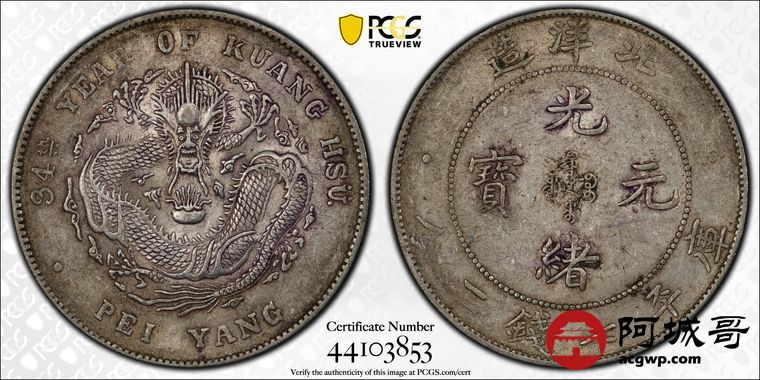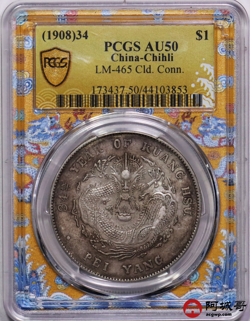 Lot:10 原味老包浆 北洋34七钱二分 PCGS AU50