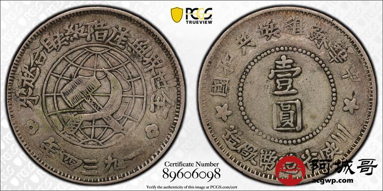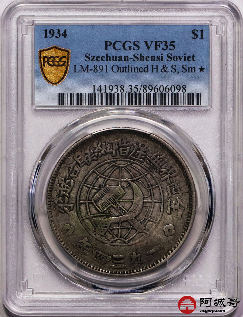 Lot:11 原味老包浆 陕川省造苏维埃壹圆 PCGS VF35
