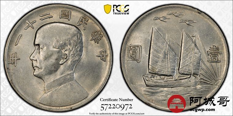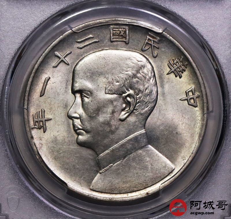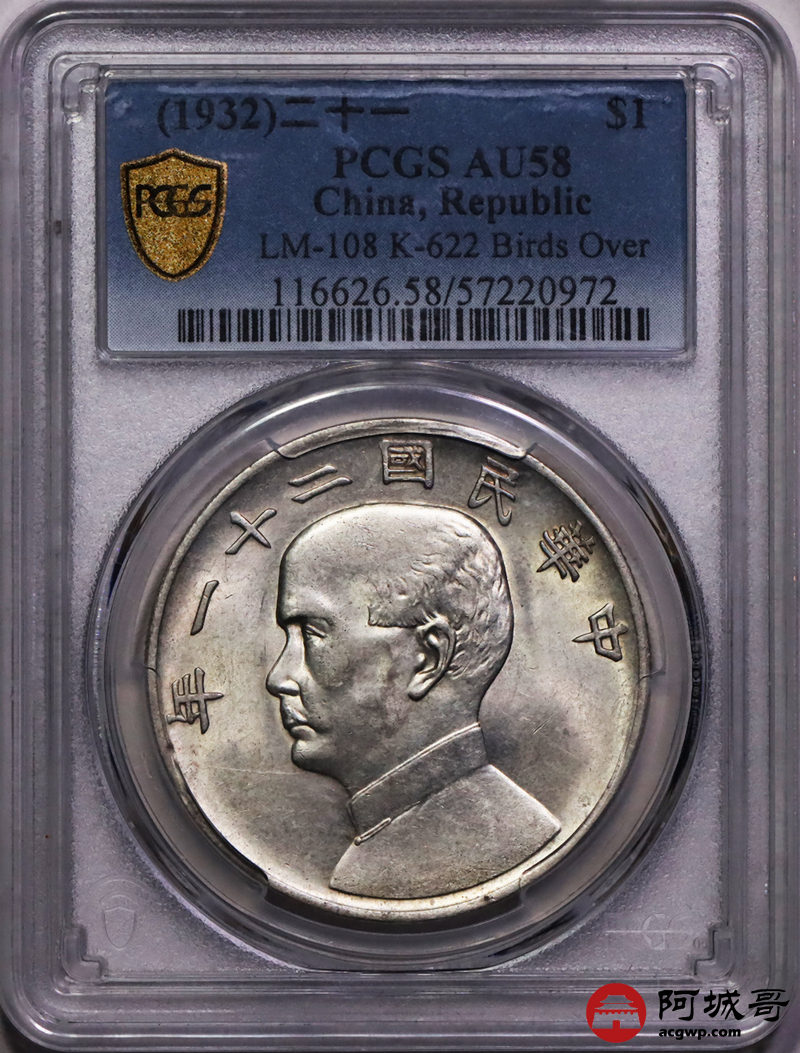 Lot:15 转光深打 民国二十一年孙像三鸟壹圆 PCGS AU58
