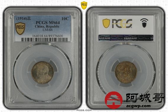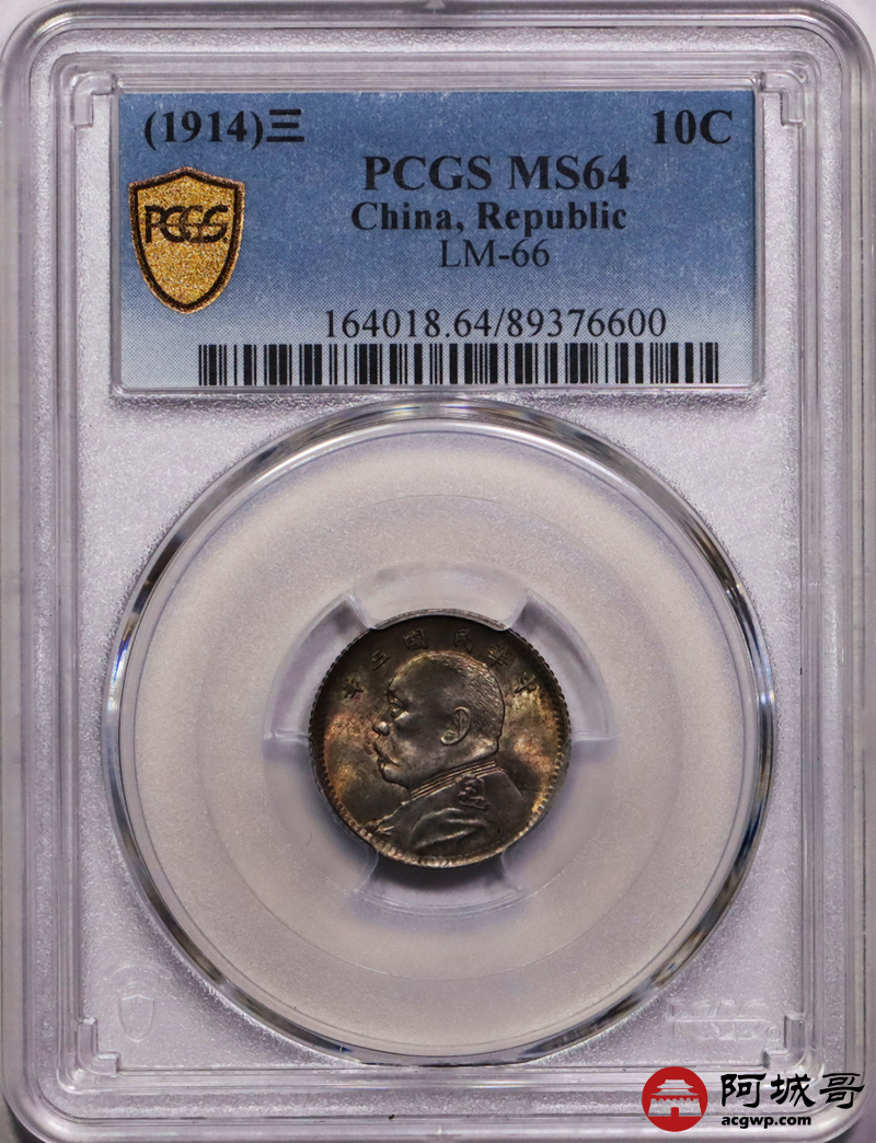 Lot:1 深打 五彩原光 三年大头壹角 PCGS MS64