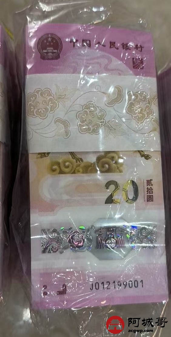 Lot:19 2026年马年纪念钞整捆千连无3457朦胧双老虎号99999/00000 J012199001-J012200000