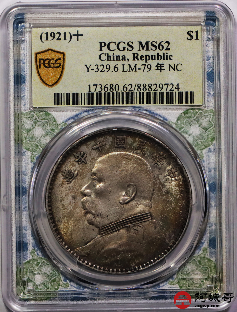 Lot:10 五彩包浆 民国十年大头 PCGS MS62