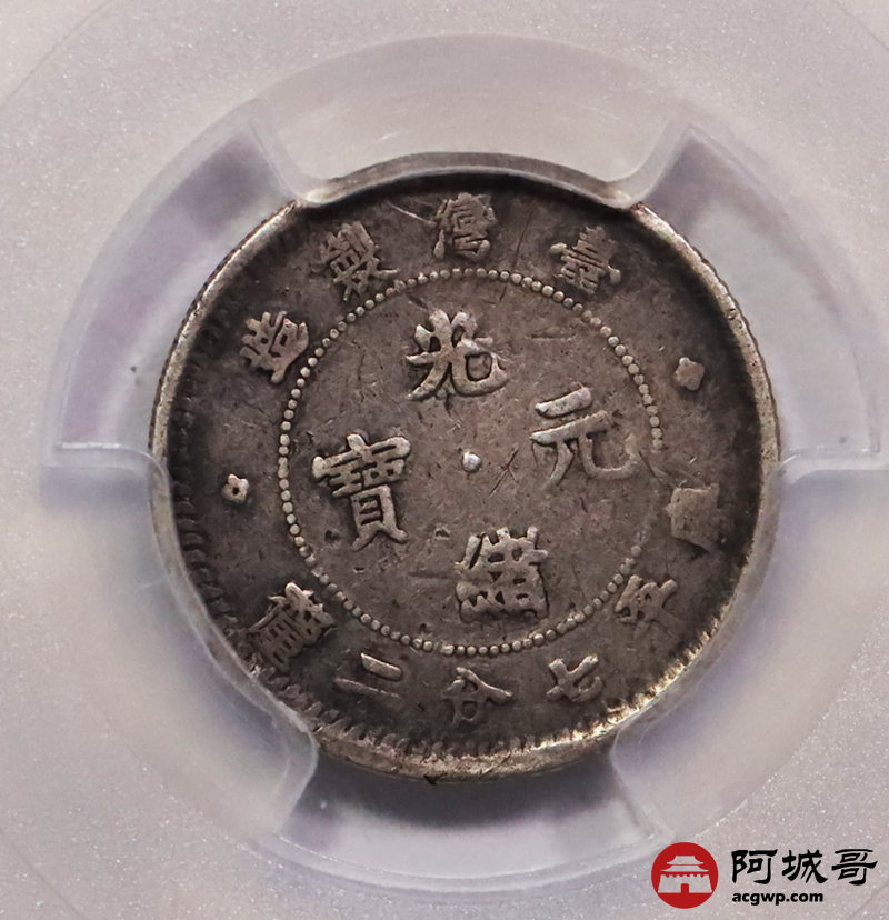 Lot:2 原味老包浆 台湾光绪七分二厘 PCGS VF
