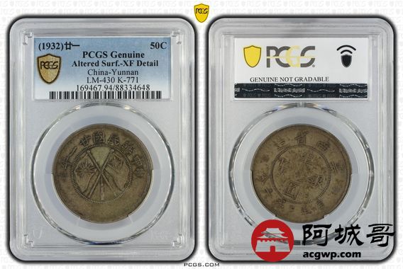 Lot:1 原味老包浆 云南双旗半圆 PCGS XF
