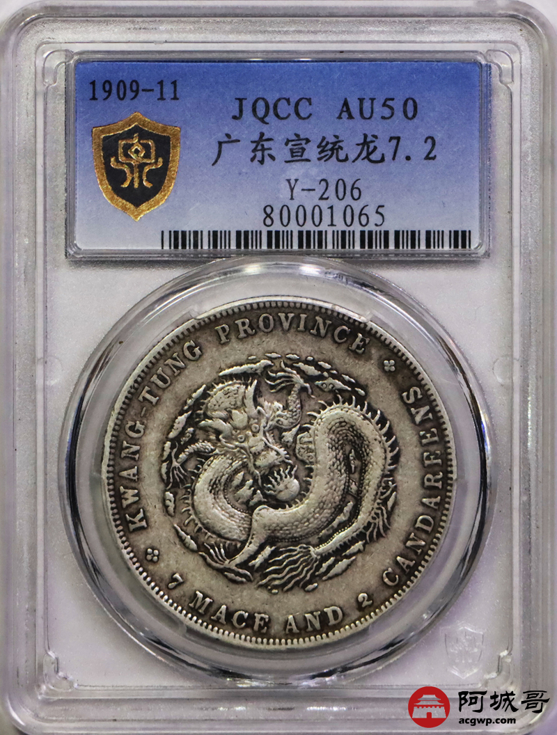 Lot:27 原味老包浆 广东宣统七钱二分 JQCC AU50