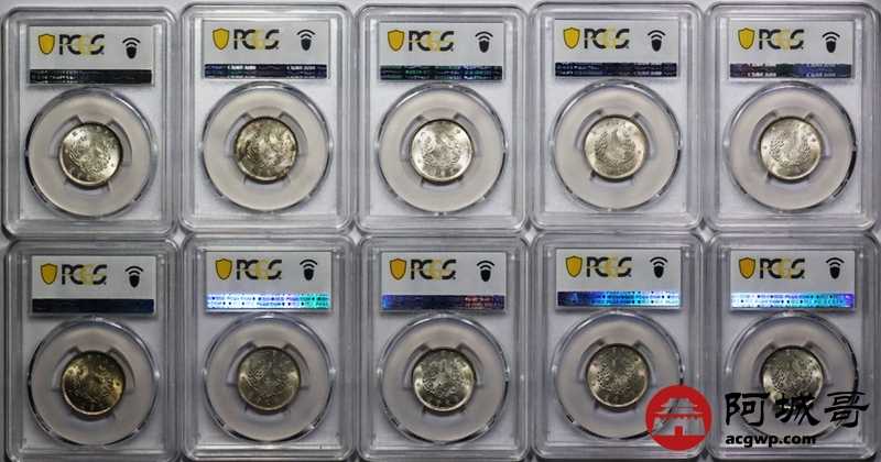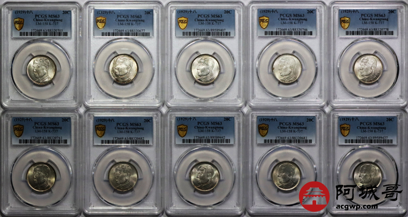 Lot:23 民国十八年广东孙像贰豪 PCGS MS63十枚