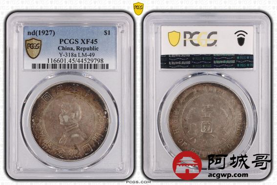 Lot:8 原味酱彩 孙像小头壹圆 PCGS XF45