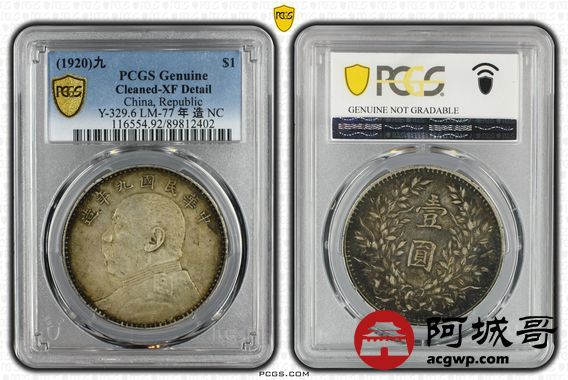Lot:3 原味酱彩 九年中发壹圆 PCGS XF