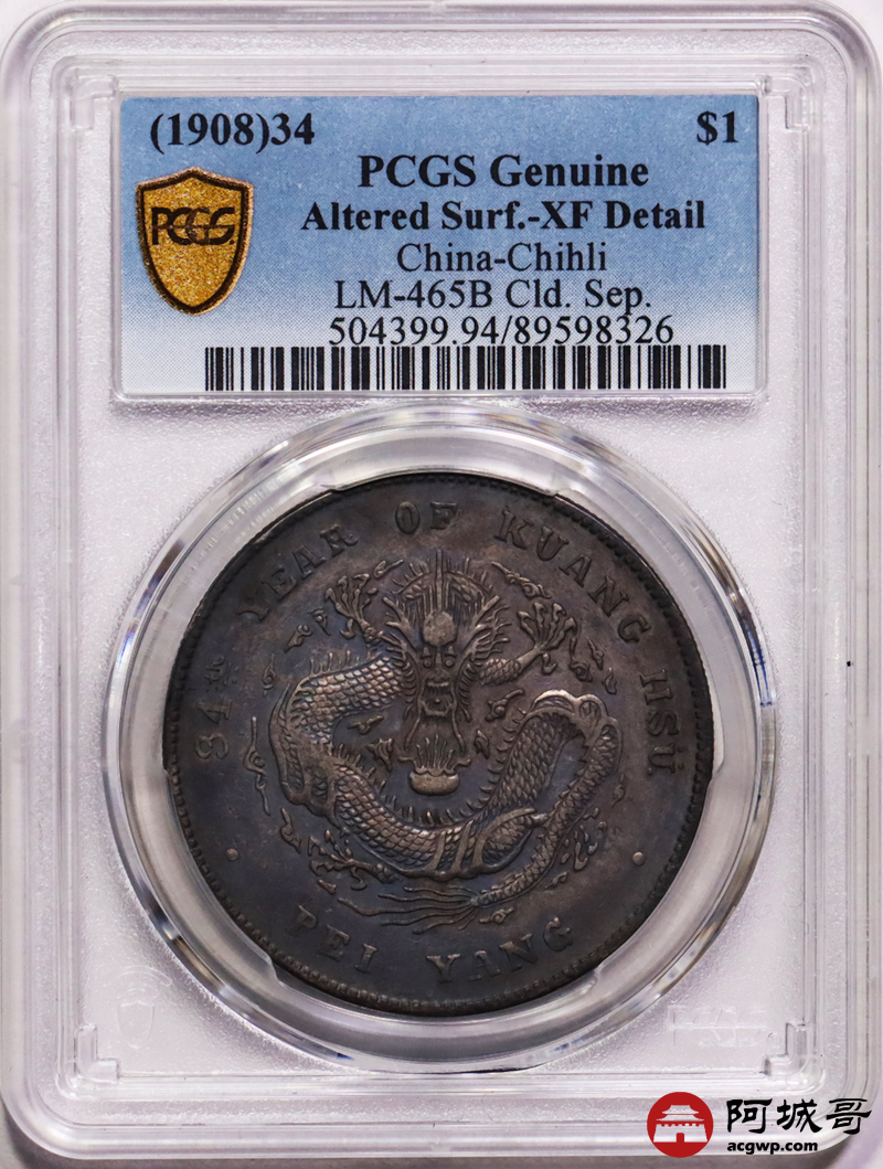 Lot:17 酱彩包浆 北洋34七钱二分 开云版 PCGS XF