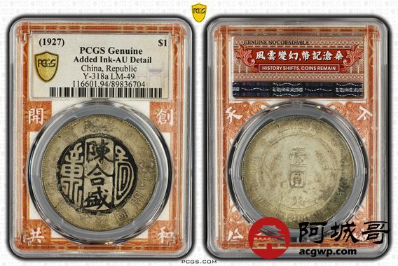 Lot:4 原味 黄油底光 孙像小头 陈合盛 墨戳 PCGS AU