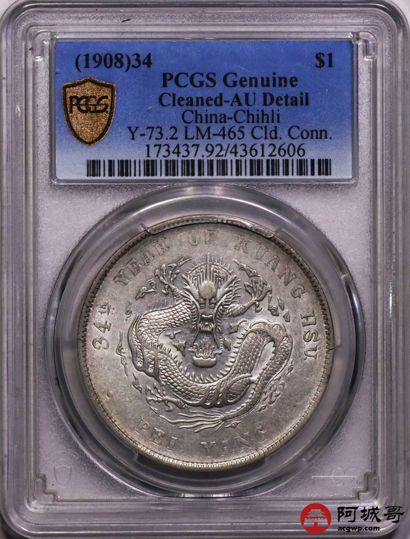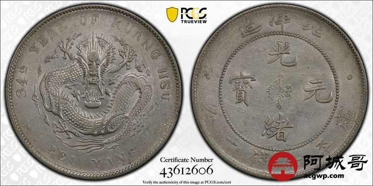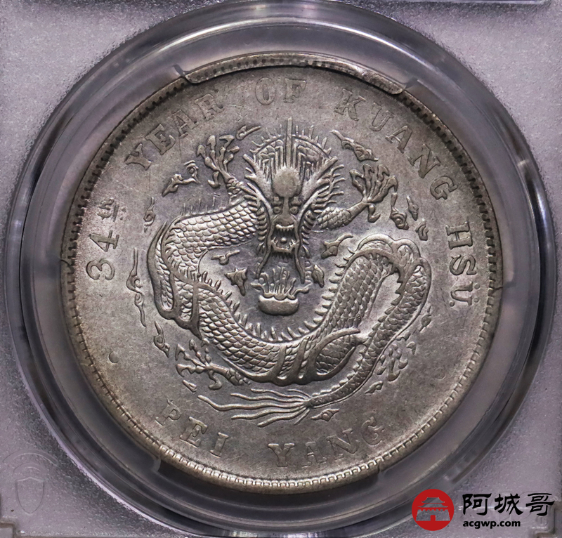 Lot:20 深打 满龙鳞 北洋34七钱二分 PCGS AU