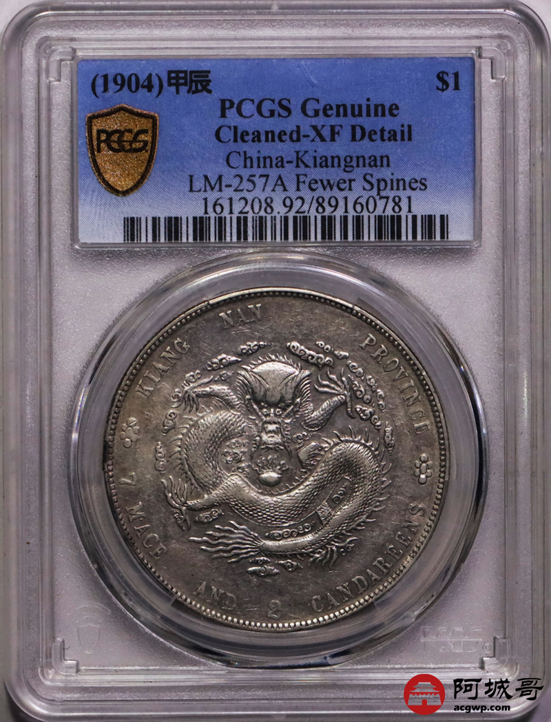 Lot:23 爆鳞深打 江南甲辰七钱二分 PCGS XF