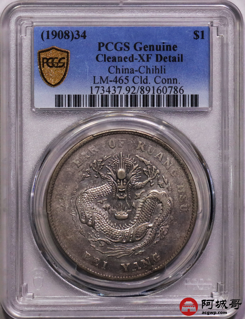 Lot:22 深打 全龙鳞 北洋34七钱二分 PCGS XF