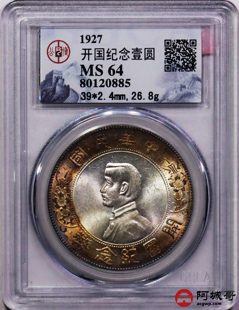Lot:27 环彩车轮转光 孙像小头壹圆 公博 MS64