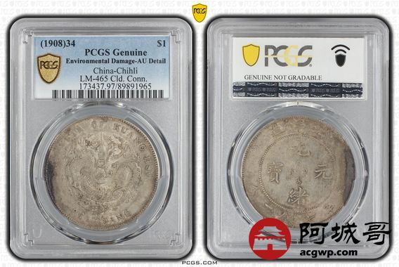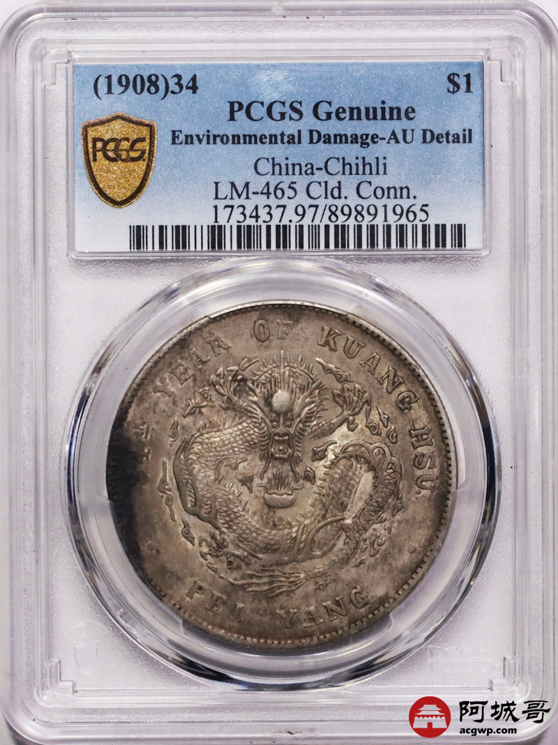Lot:18 原味 黄油转光 北洋34七钱二分 PCGS AU