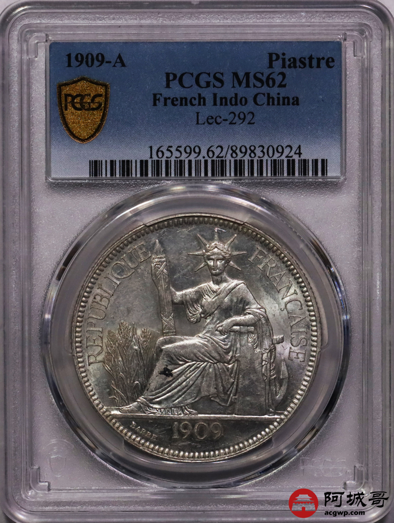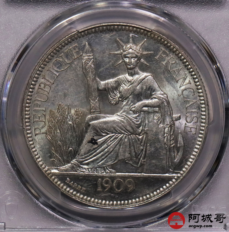 Lot:12 1909-A坐洋壹圆全深打油彩转光 PCGS MS62