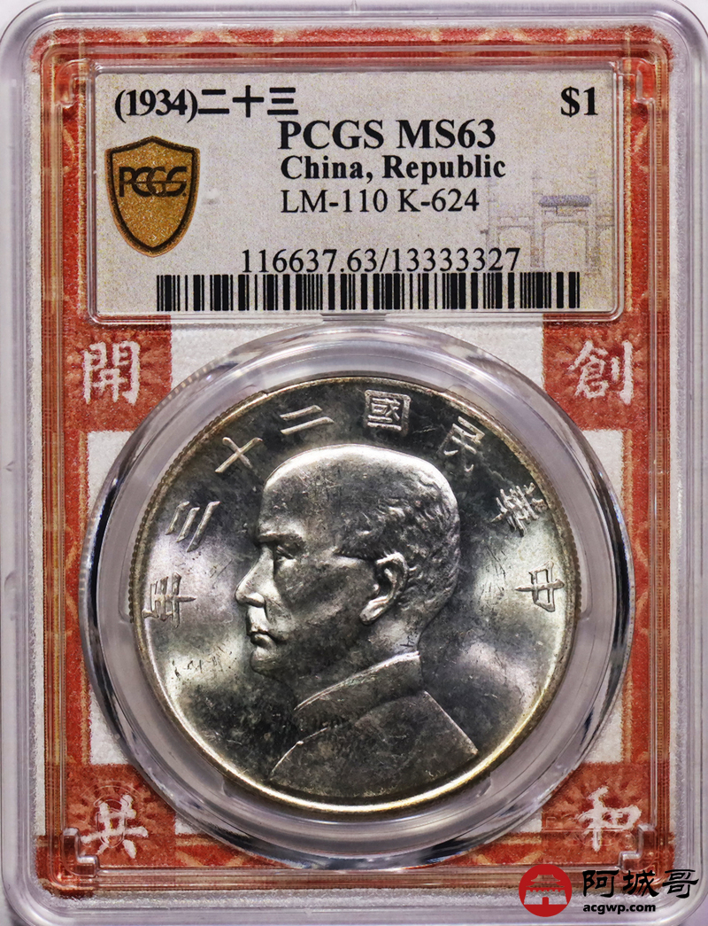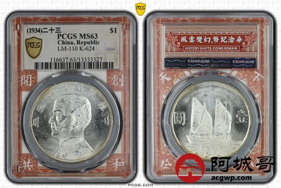 Lot:23 原色曝光 二十三年船洋 PCGS MS63