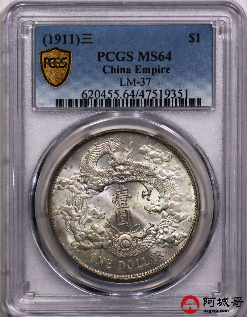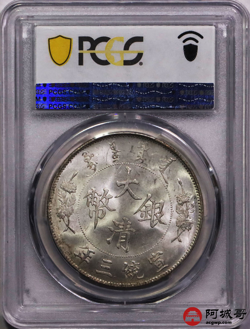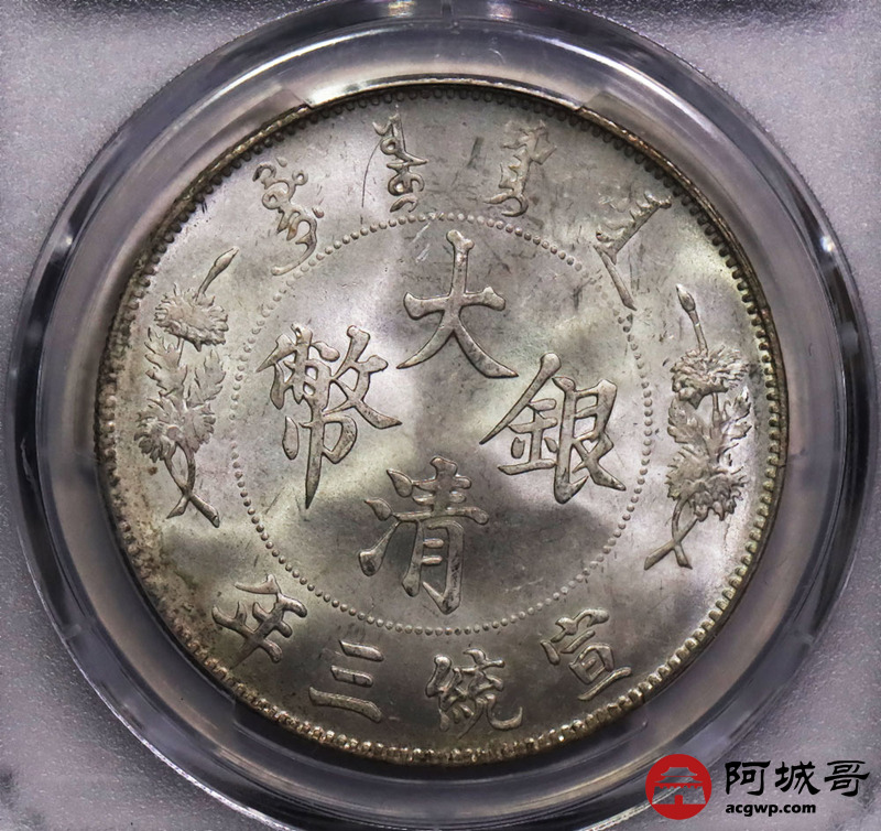 Lot:13 深打满花枝 银爽曝光,丝绸底板 大清宣三壹圆 PCGS MS64