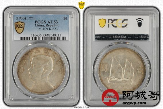 Lot:6 原味黄油包浆 二十二年船洋 PCGS AU53